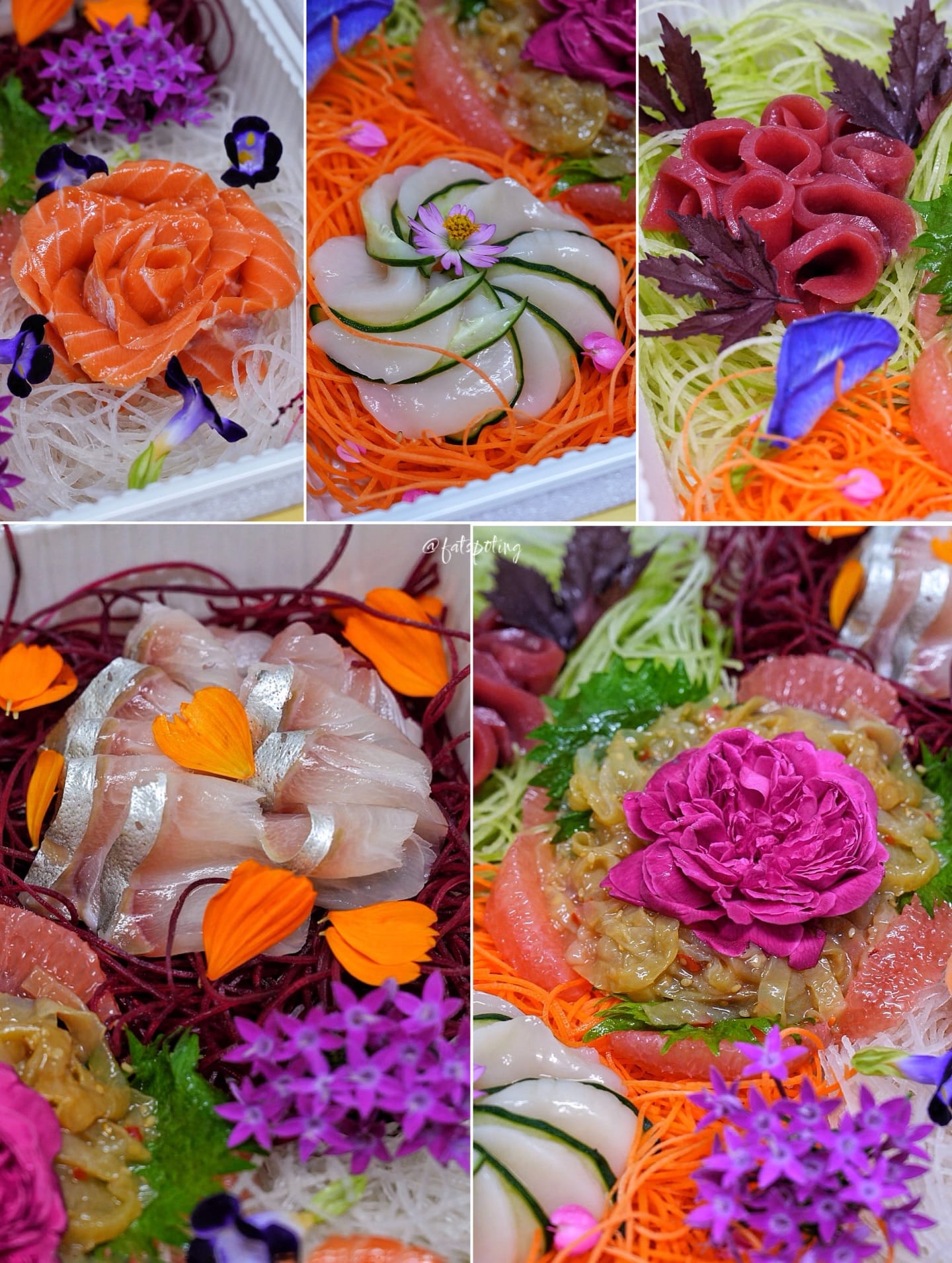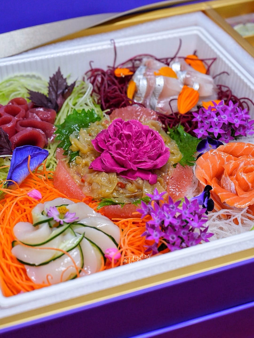 🐟A quintet of sustainably sourced sashimi - Salmon, Tuna, Scallop, Yellowtail and Jellyfish, is artfully layered to reflect the abundance and splendour of the festive occasion.