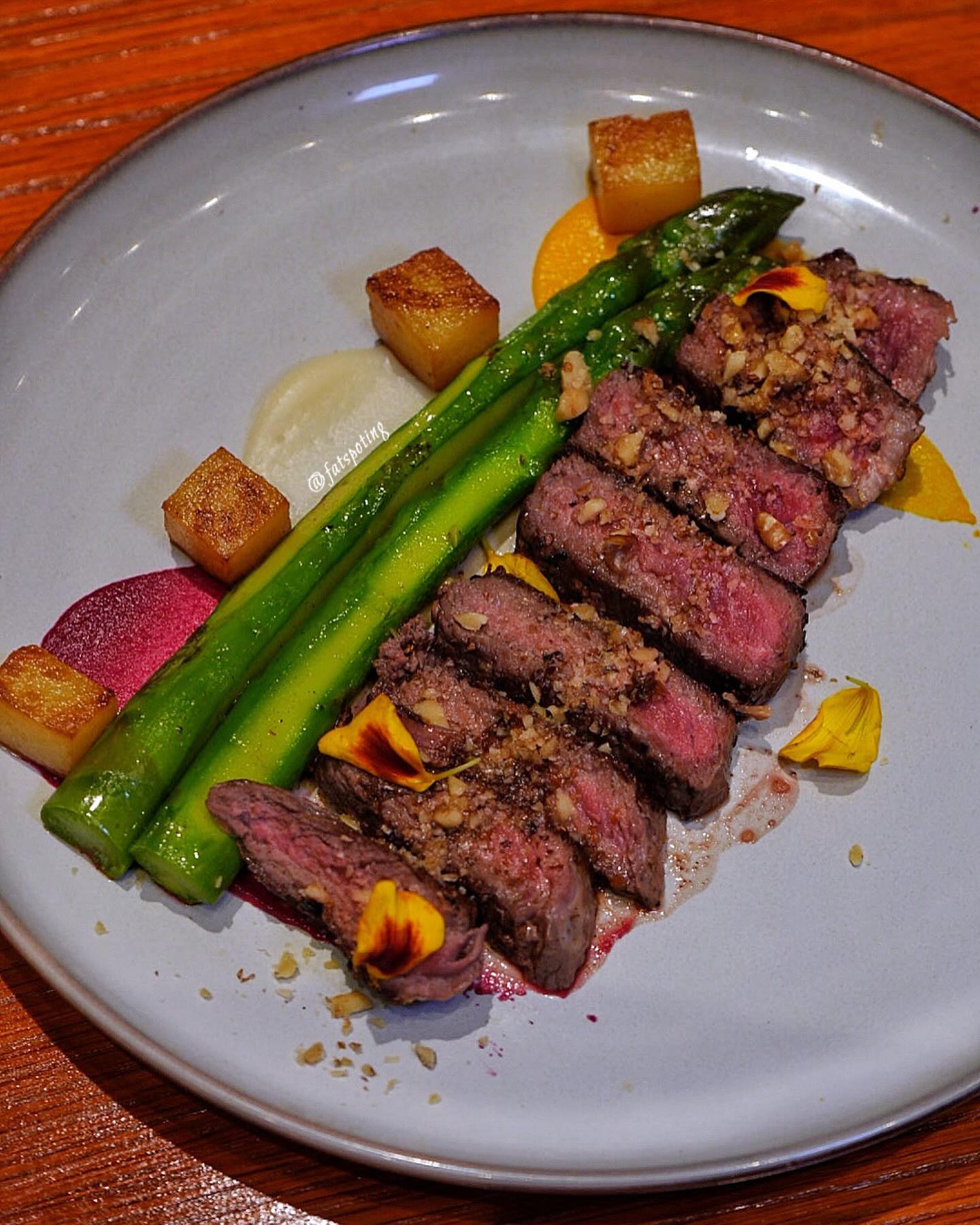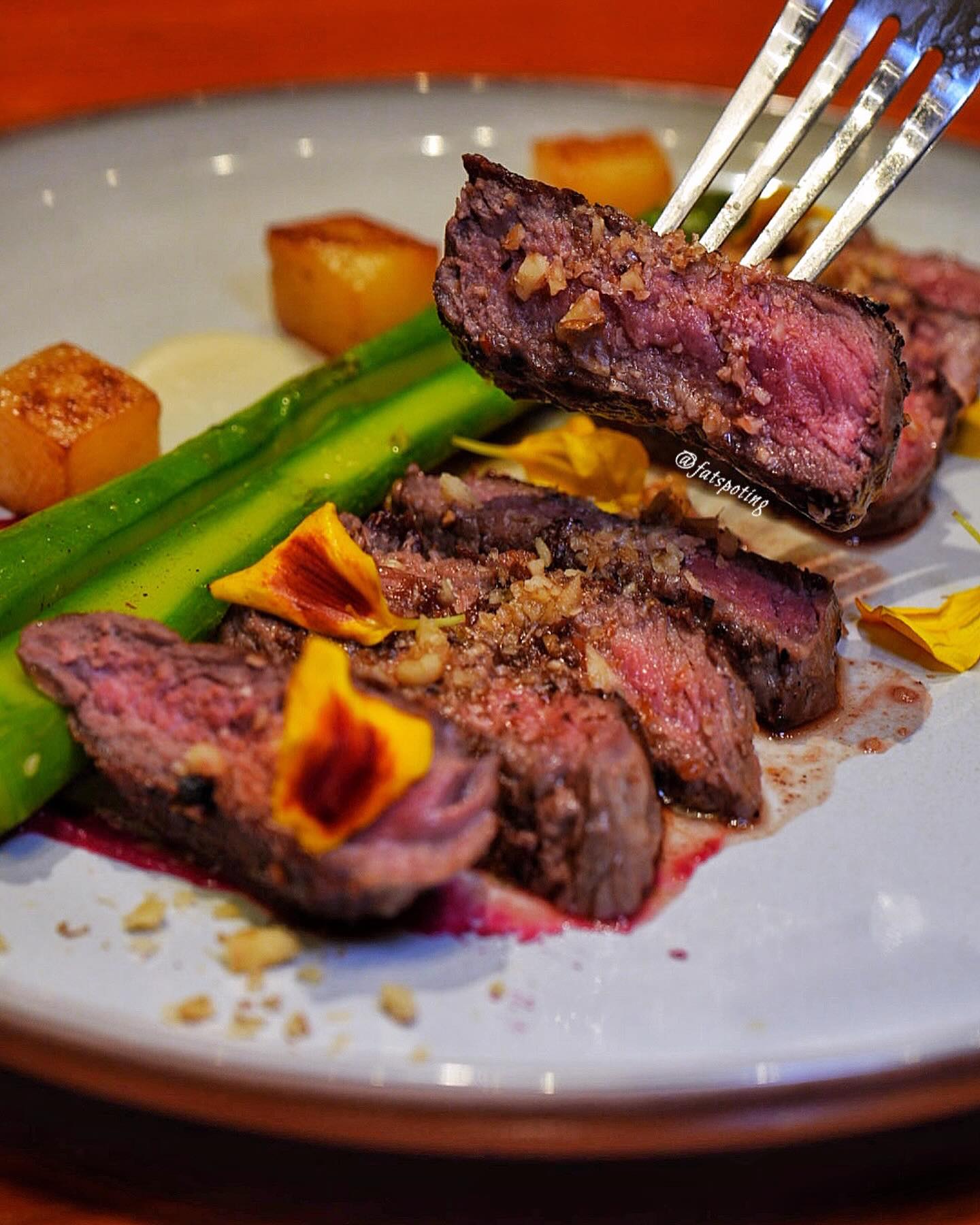 Asparagus, Roasted potato, purple Shiso,