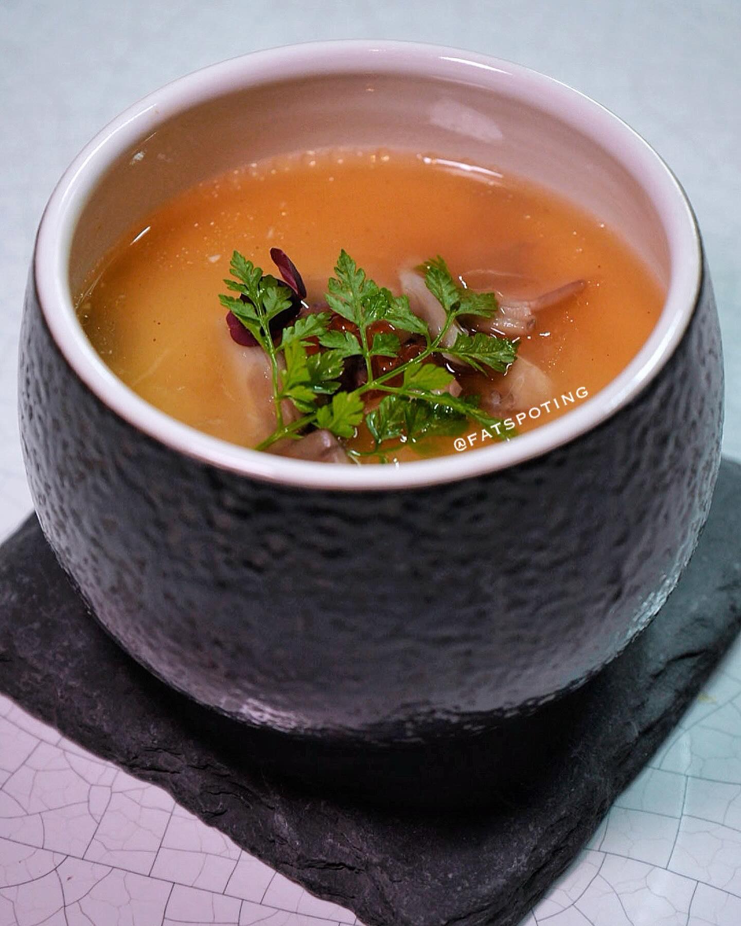 Beef tendon, maitake, dashi and sauce