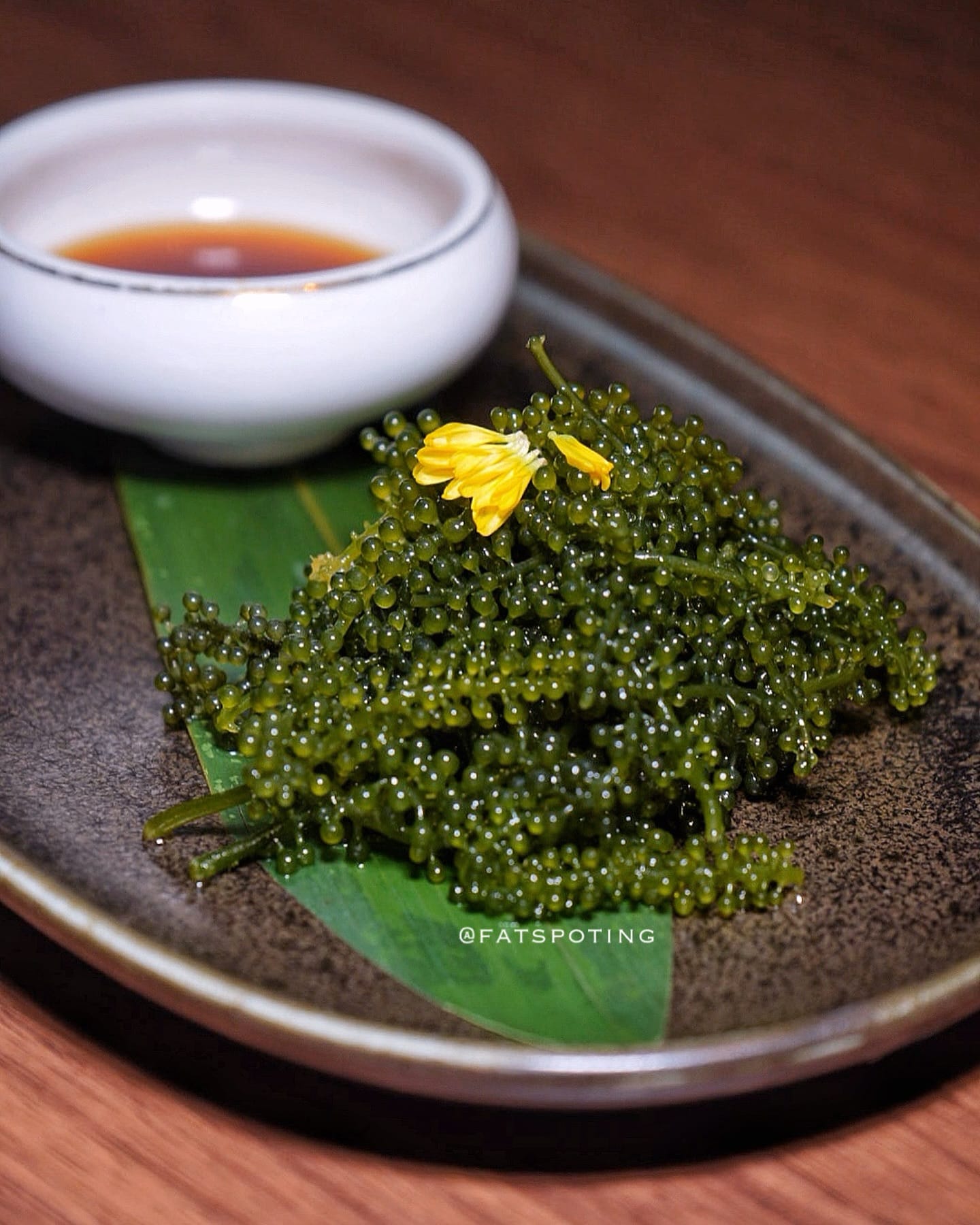 Sea grapes served with homemade ponzu sauce