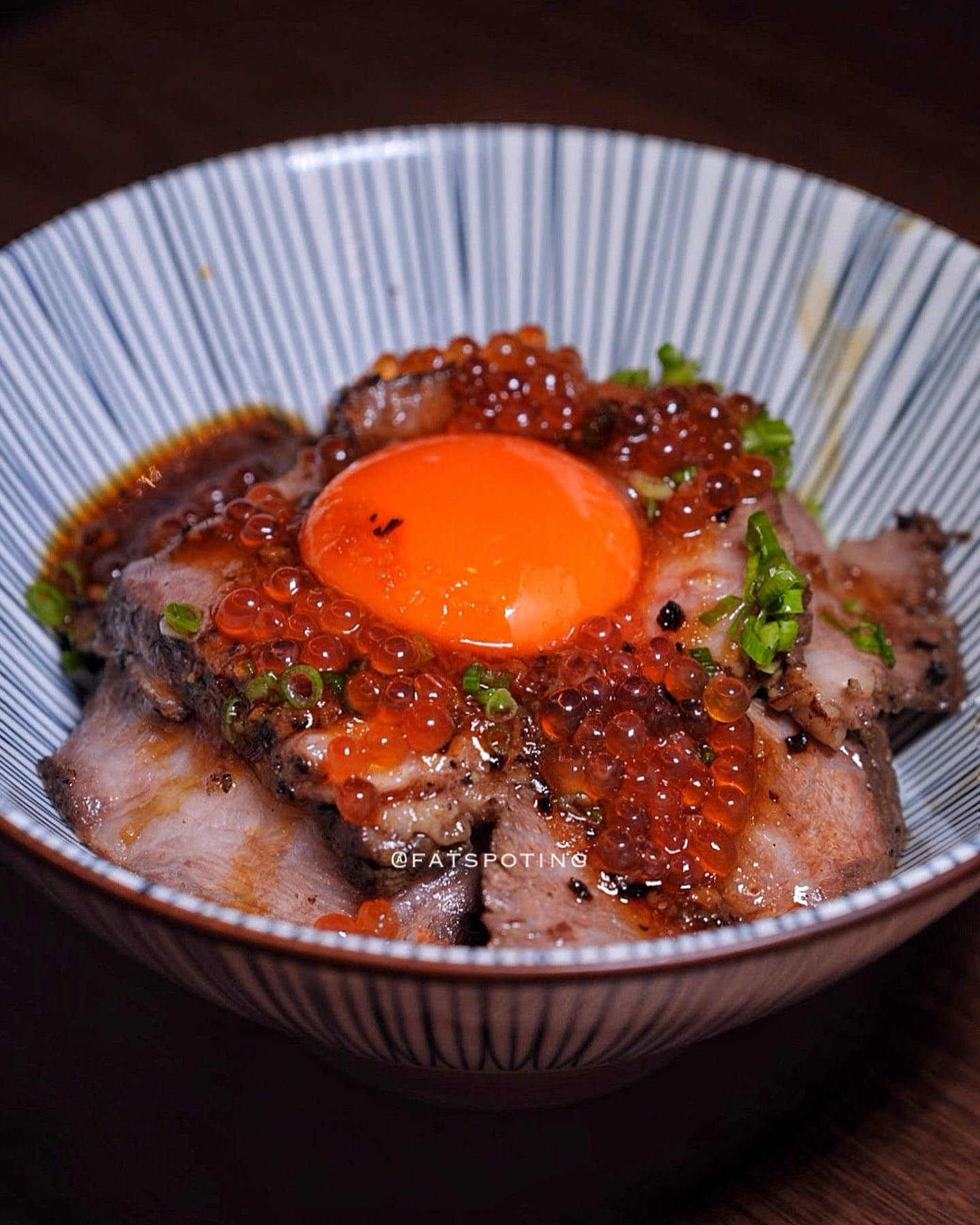 A4/A5 premium Miyazaki roast wagyu with wafu onion sauce, ikura topped with Okinawa egg yolk on rice
