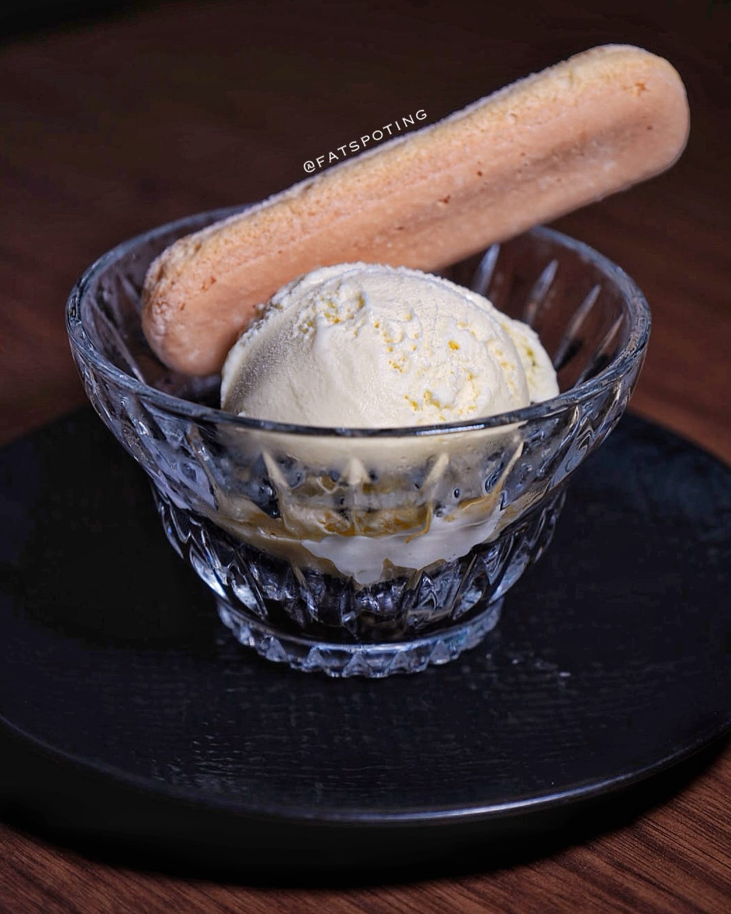 Coffee jelly with vanilla ice cream and biscuit