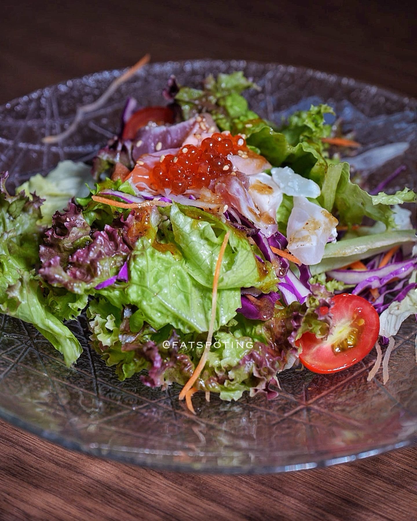 Mix salad topped with lightly torched assorted sashimi, served with Japanese wafu dressing