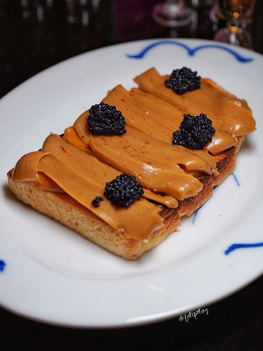 Whampoa-sourced toast with coffee butter, salted egg kaya and smoked lumpfish caviar.