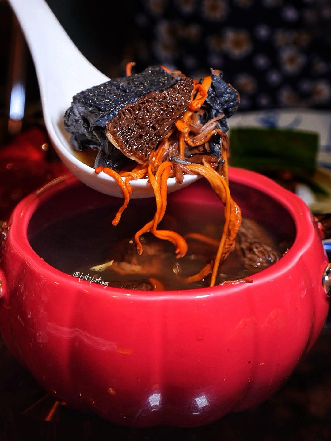 Nourishing broth double-boiled with silkie chicken, morels, and dried scallops, served in kabocha pumpkin.