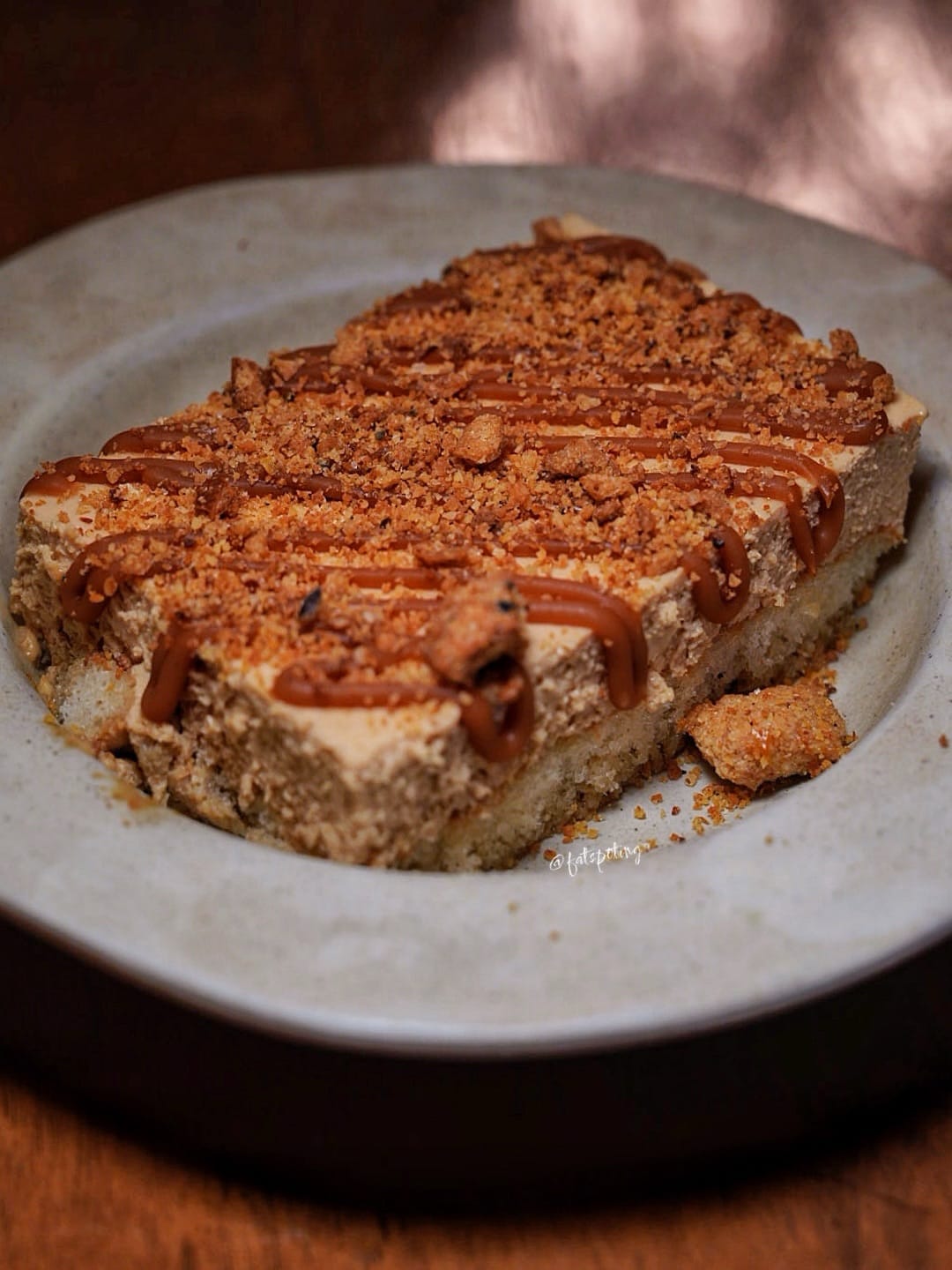 A reinterpretation of the traditional tiramisu, this version introduces nutty kinako, textural sourdough crumbs and coffee caramel.