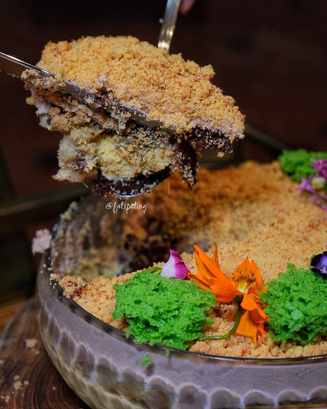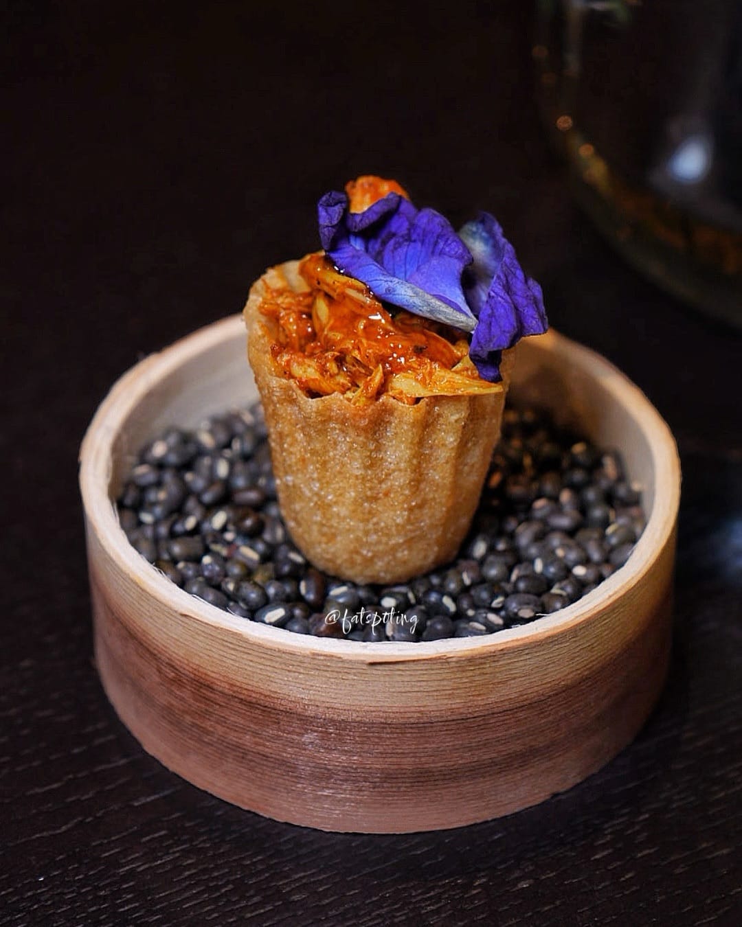 On weekdays, the Edible Garden Afternoon Tea offers a dainty spread of sandwiches, scones, and pastries with floral and local flair—like the sakura-infused egg salad sandwich and salted egg yolk pumpkin quiche. The experience is elevated with amuse-bouche and dessert trolleys, plus a choice of local teas and Italian coffee. It’s priced at $54++ per adult and $27++ per child, with optional prosecco or champagne add-ons.