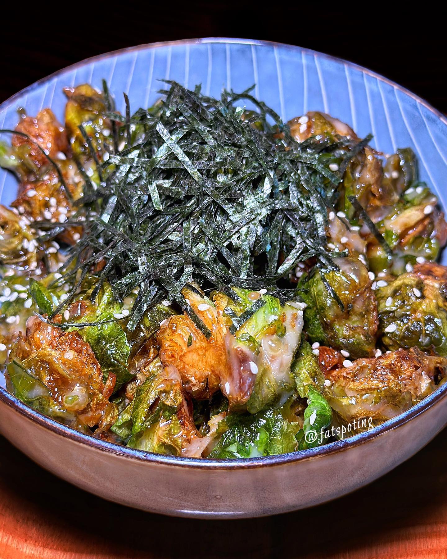 Has a nicely charred flavour, drizzled with yuzu sesame and topped with nori