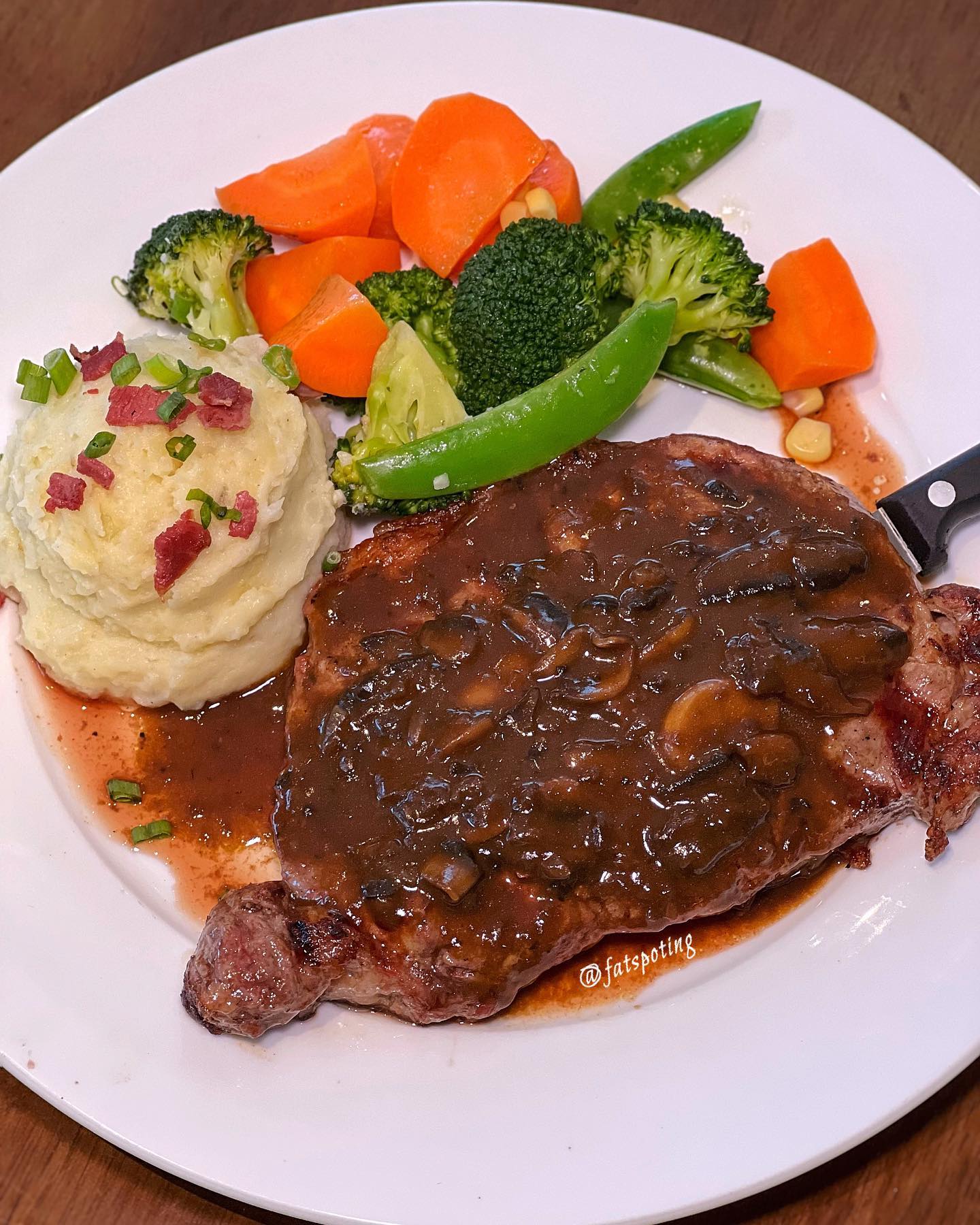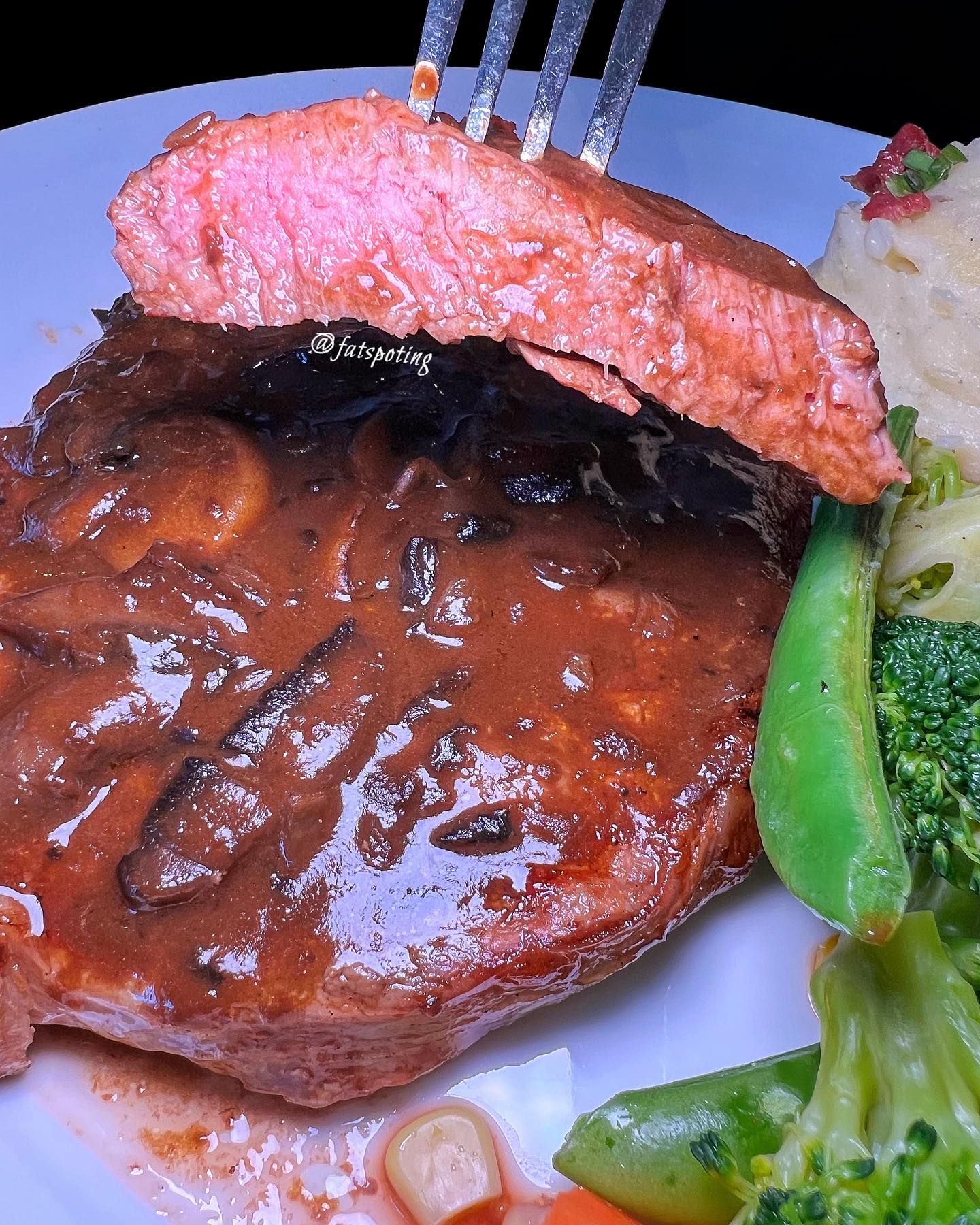 🥩Deluxe NY Strip With Marinated Mushrooms RM180 🐟Chipotle Grilled Salmon RM138