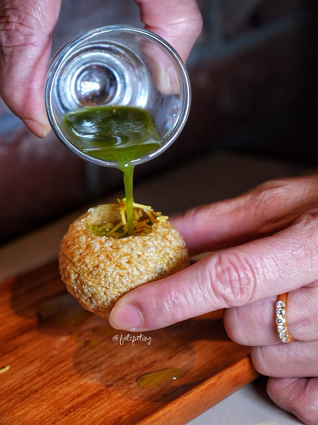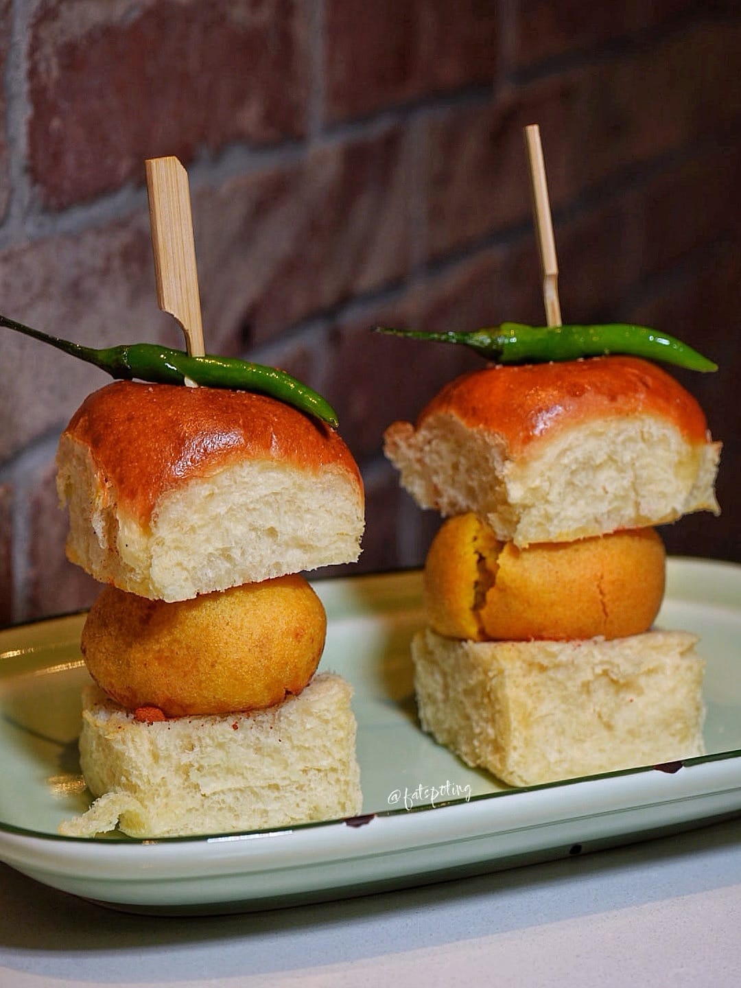 Mumbai’s famous “street burger”—spiced potato fritter in brioche, finished with chutneys and a green chilli.