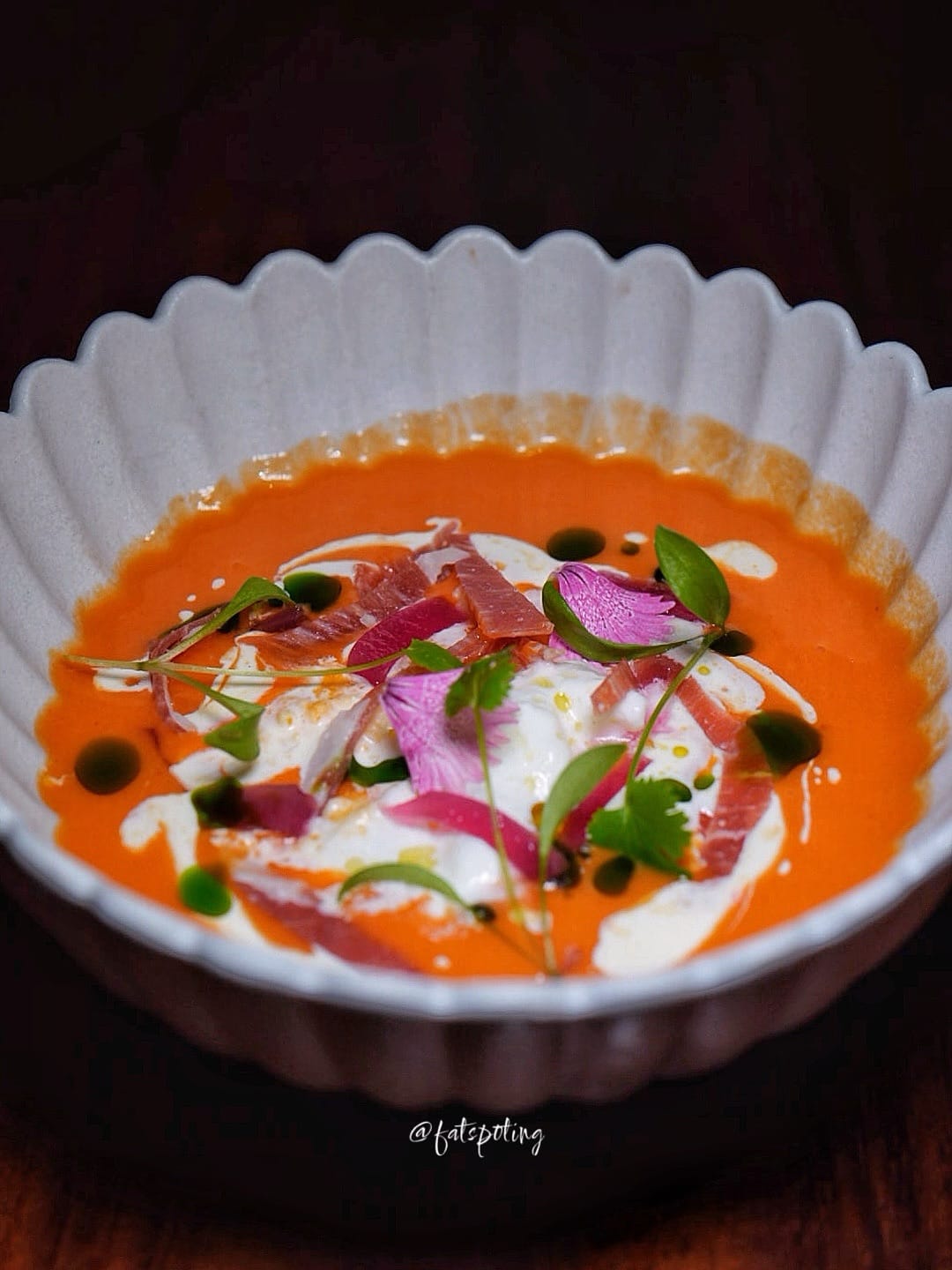 A chilled Spanish tomato soup, Salmorejo is rich and creamy, providing a smooth transition from the briny oysters to the heartier courses ahead.