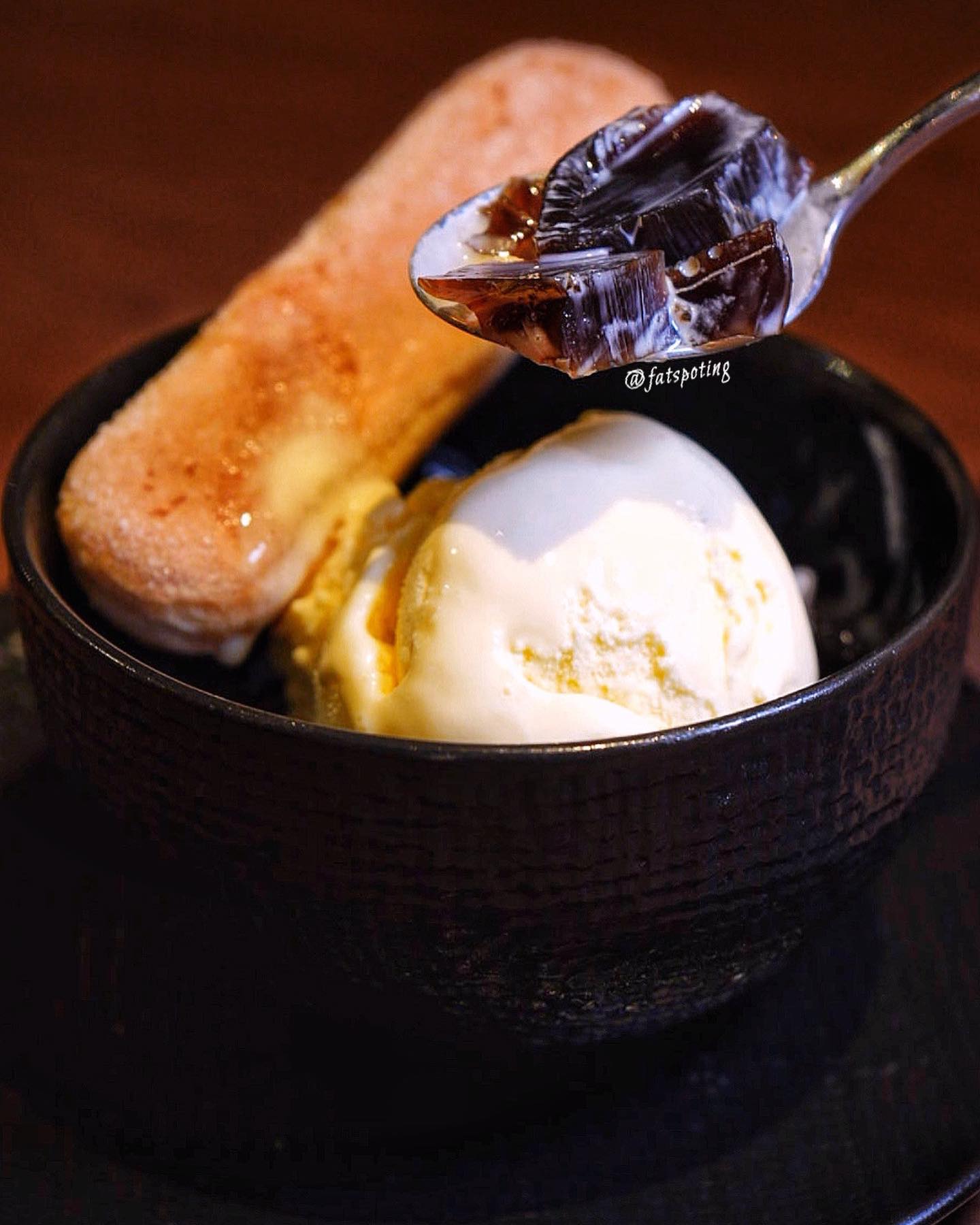 A harmonious combination of coffee-infused jelly, velvety vanilla ice cream, and a delicate biscuit.