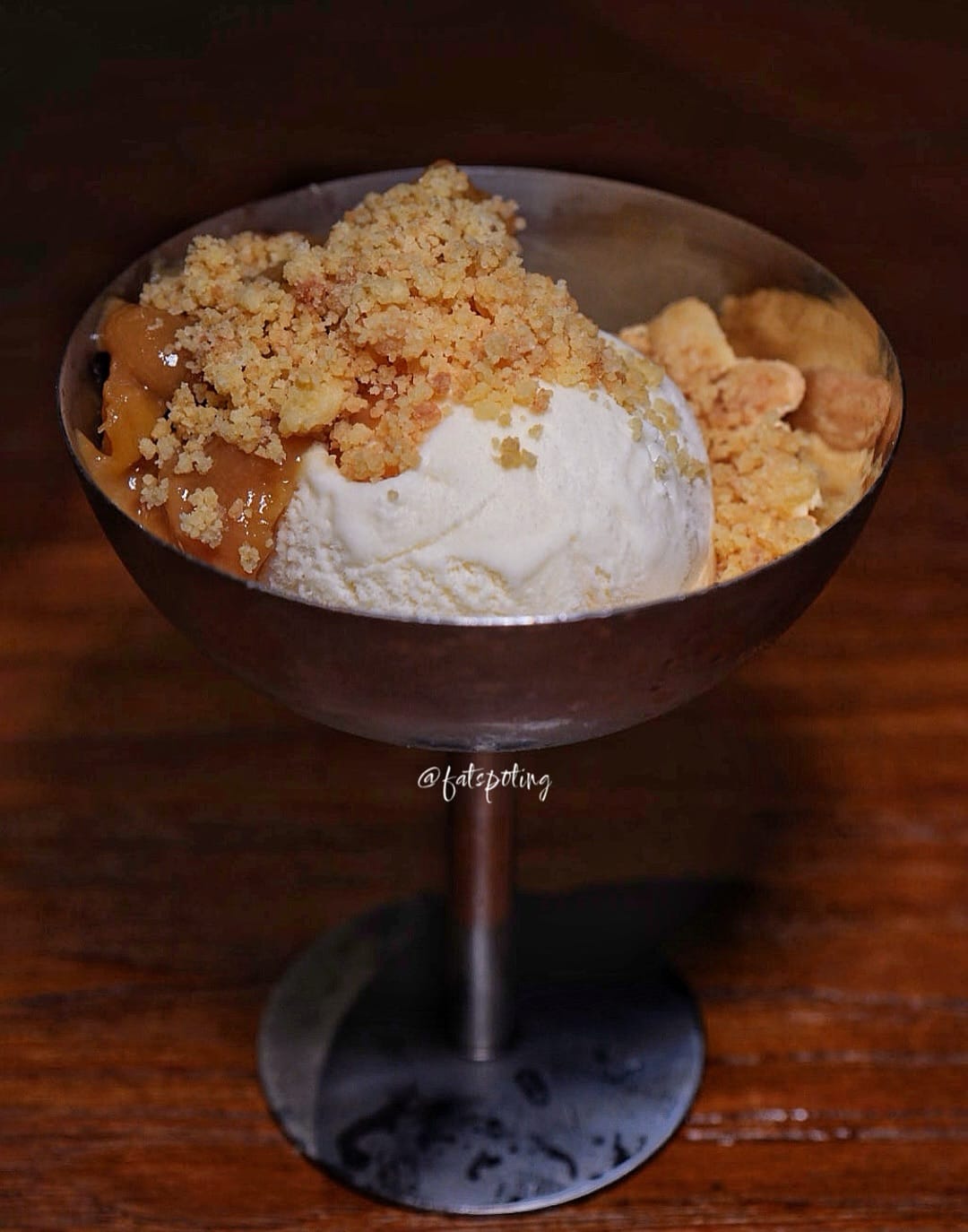 Vanilla ice-cream crowned with lush cempedak sauce and a savoury crumble for crunch. The ideal cool-down after a meal of smoke and spice.