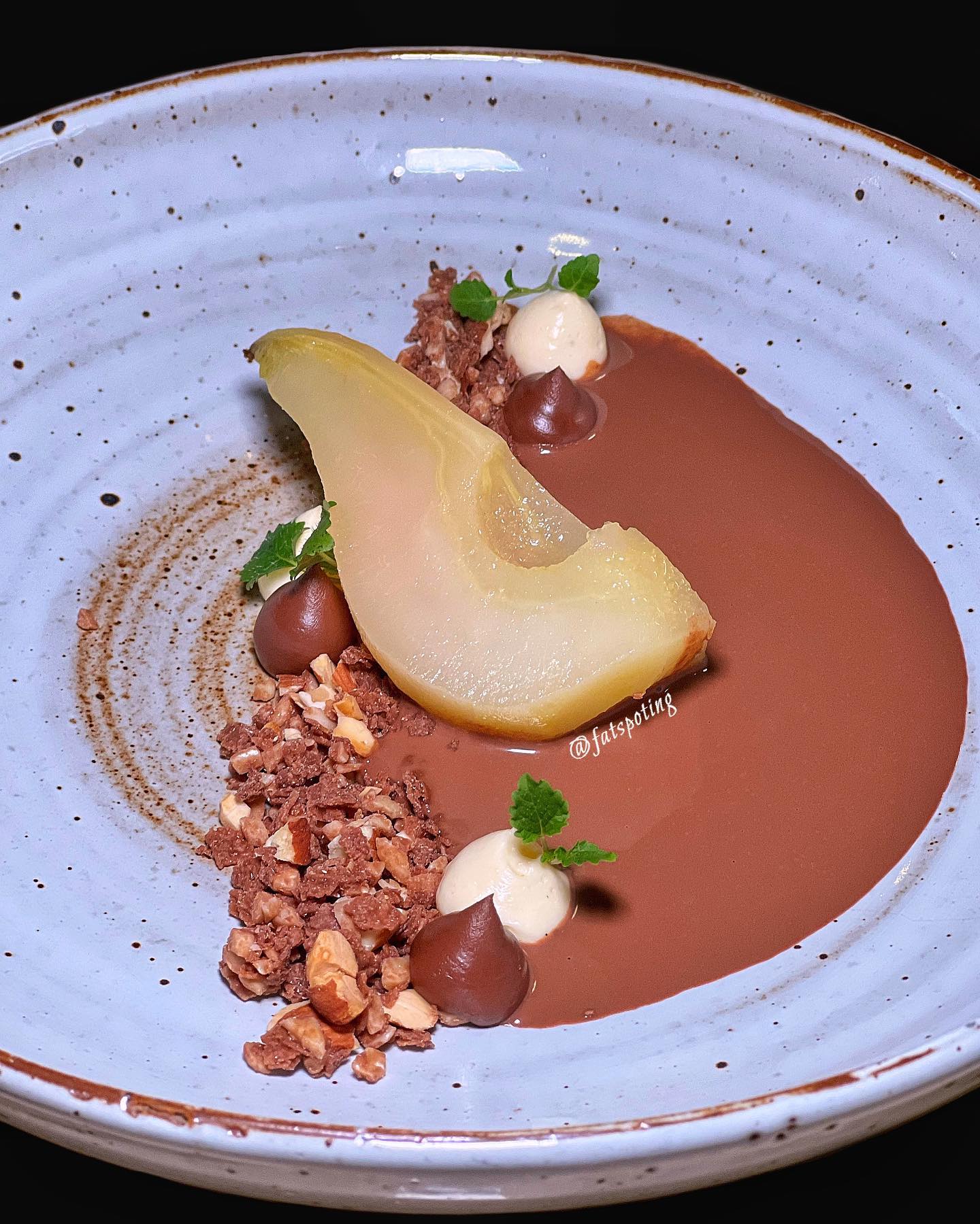 Champagne infused Poire Belle- Hélène - Champagne poached pear, 75% Valrhona chocolate