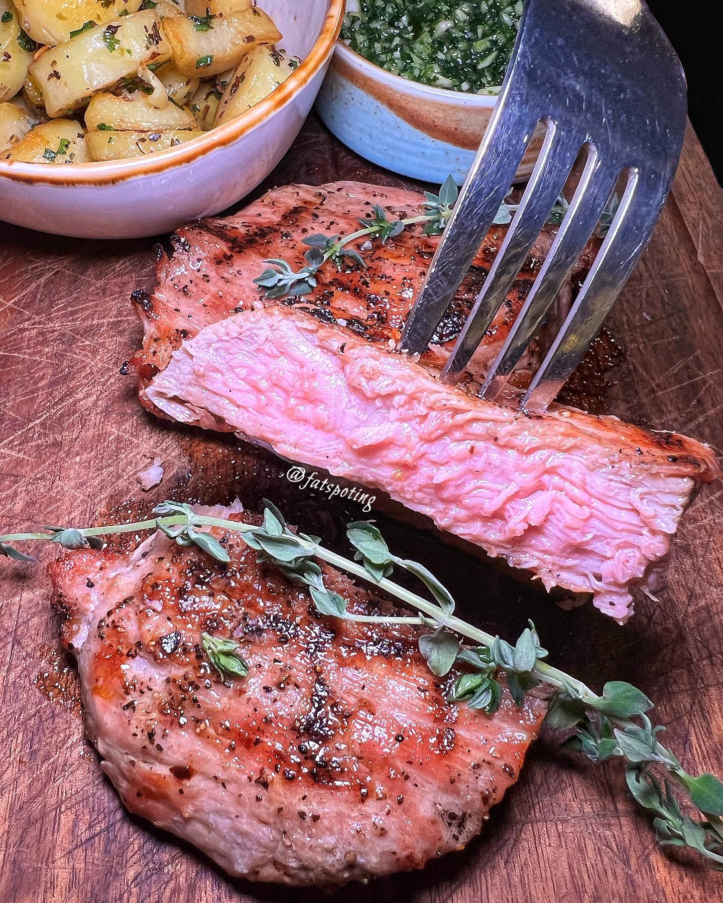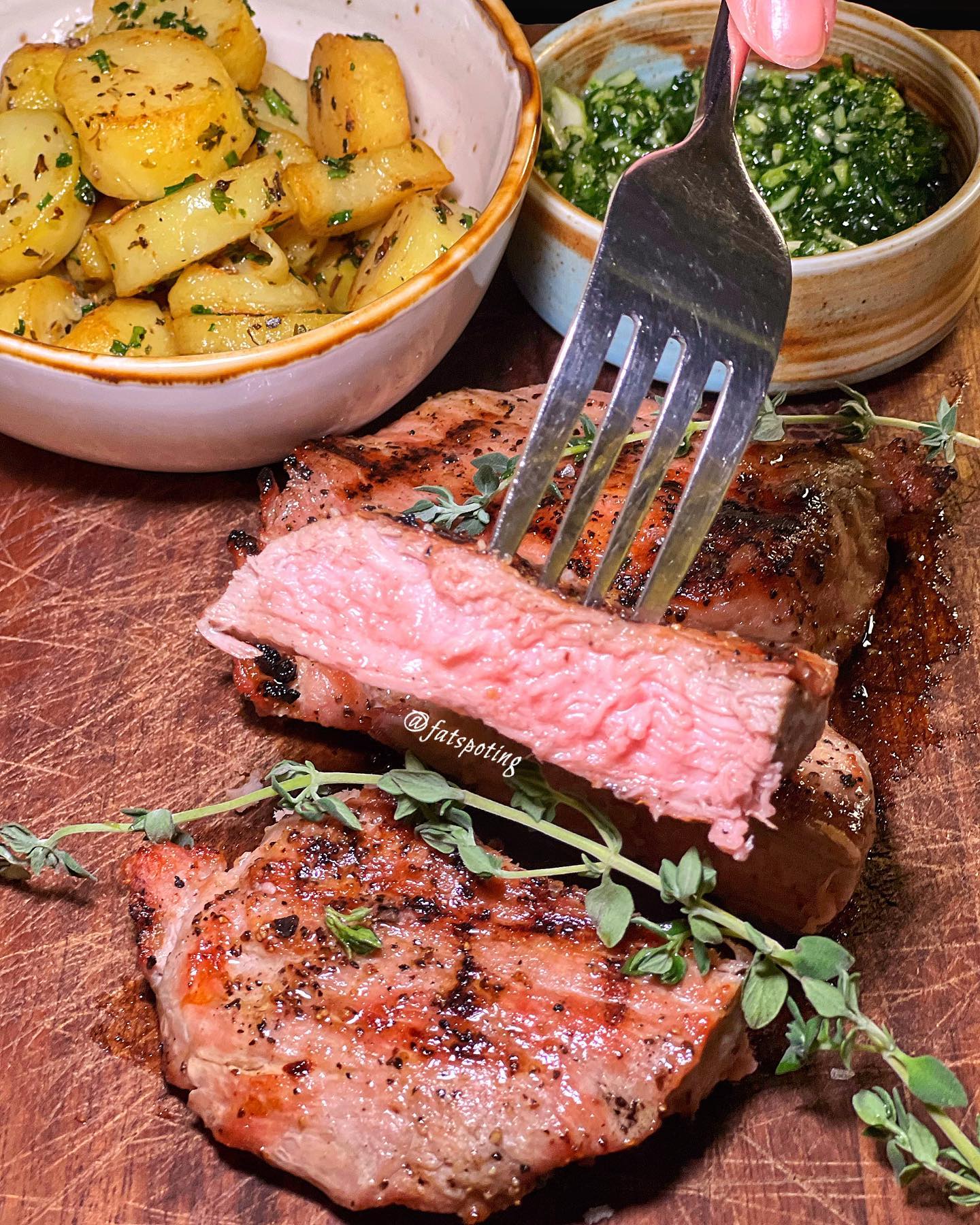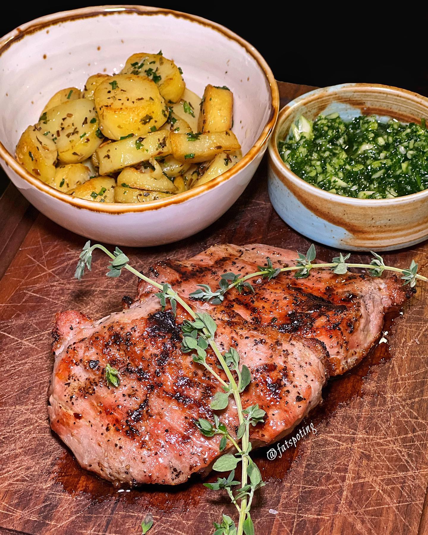 Grilled Pork Presa - Iberico (Spain), potatoes a la Provençale, garlic & parsley sauce