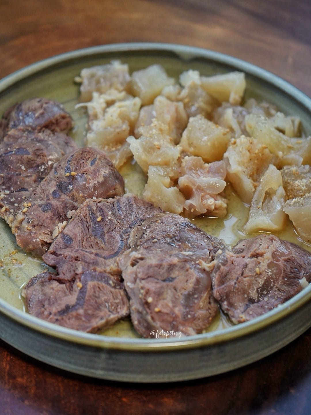 For our meat selection, we opted for the Arongsatae & Dogani. The braised beef shank (arongsatae) was tender and flavourful, while the sliced beef tendon (dogani) added a pleasant gelatinous richness and soft chew. The dish felt hearty yet refined, with clean, comforting flavours rather than heavy seasoning. It was particularly enjoyable shared, allowing us to appreciate the contrast in textures.