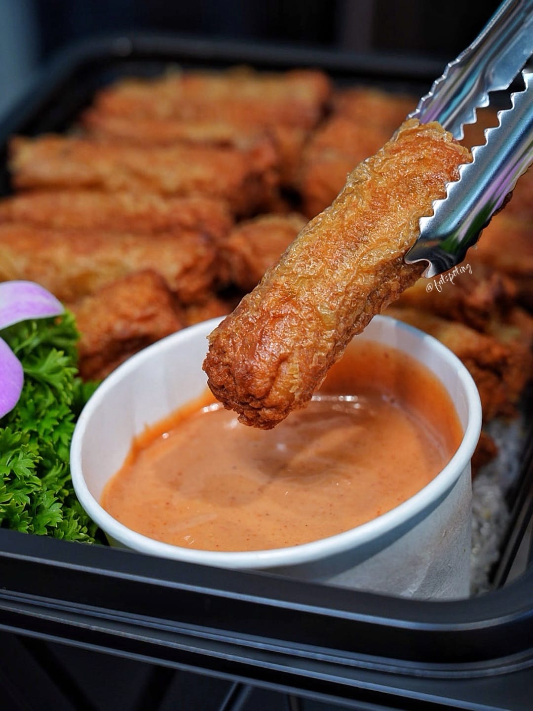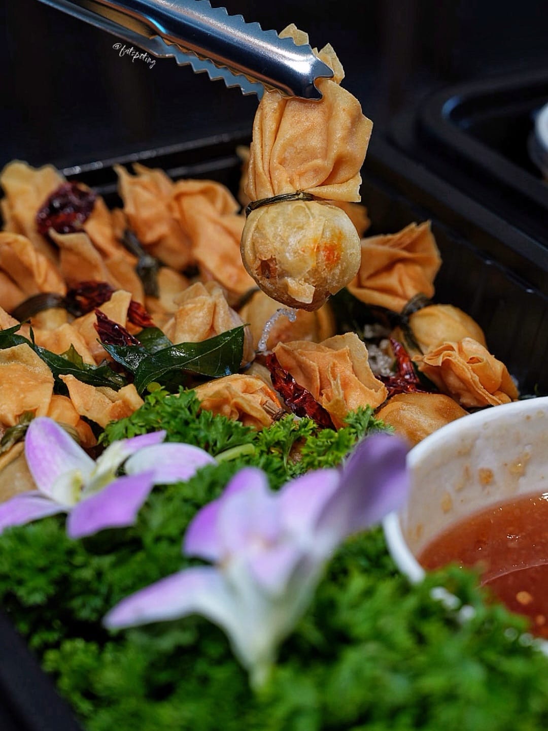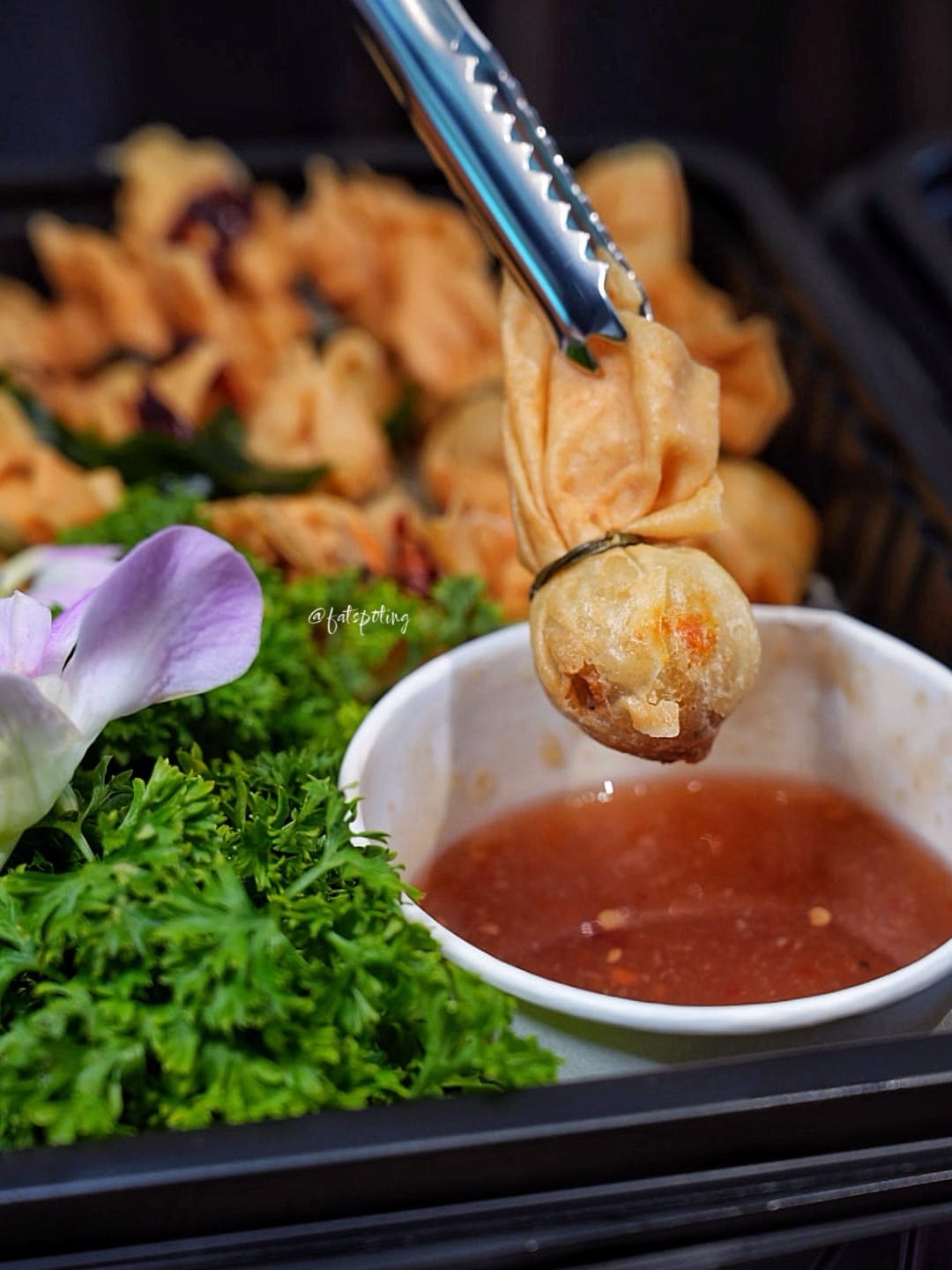 Crisp golden parcels filled with savoury seafood, complemented by a gentle sweet-spicy lift from the Thai chilli jam for added depth.