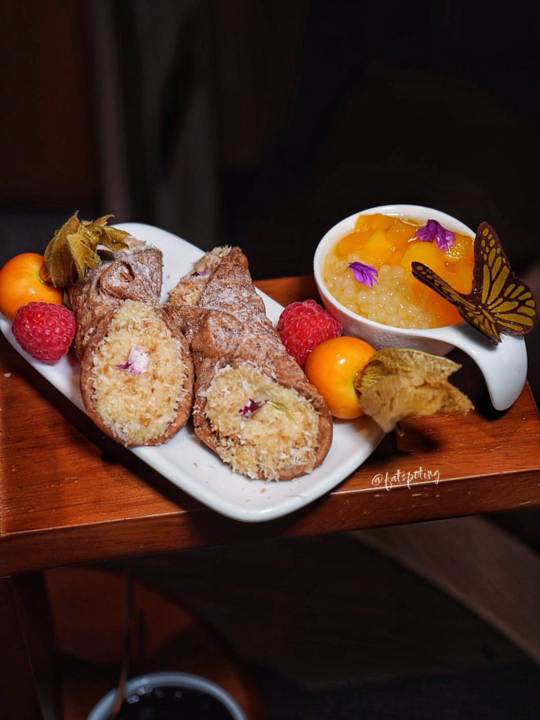 For those with a sweet tooth, the selection includes Milo-misu, Mango Sago Panna Cotta, Gula Melaka Cannolo with Desiccated Coconut, Cheesecake with Rose Bandung Cream, and Lemon and Calamansi Lime Meringue Tart.