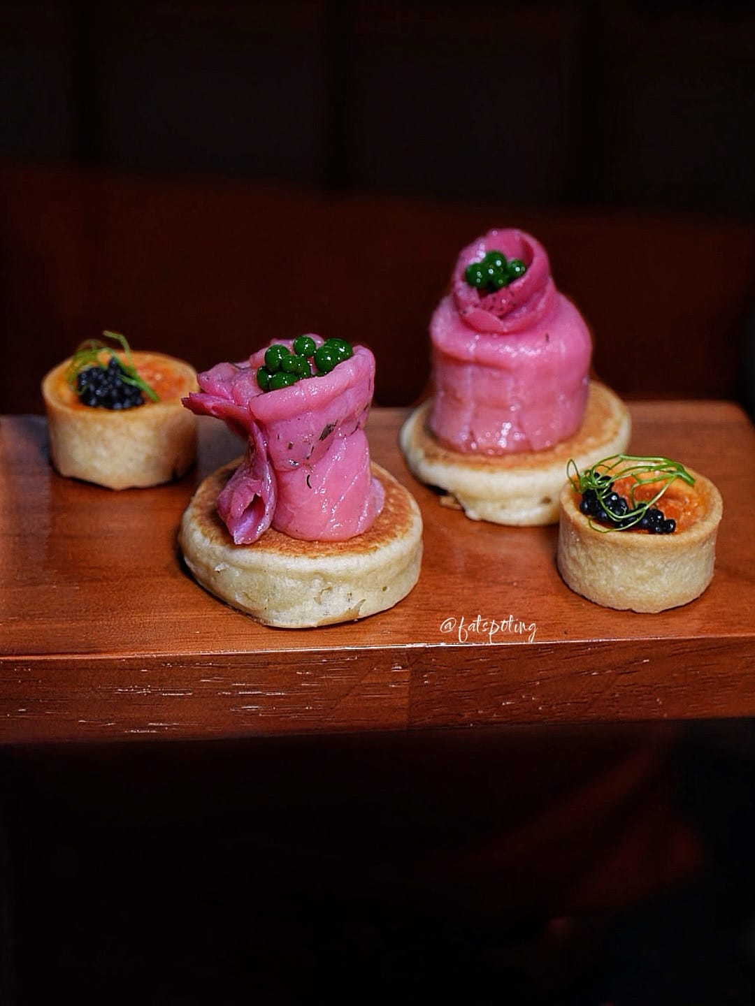 The menu features an array of inventive savouries, including Laksa Prawn Mousse Crostini and Chicken Rice Arancini with Pickled Cucumber and Chilli Jam, offering a nod to beloved local dishes. Other highlights are the Beetroot Cured Salmon with Watercress and Caviar on Blinis, Pizza Taco with Burrata and Coriander Pesto, Truffle Honey Ricotta Focaccia, Chilli Crab Quiche, and Tomato Focaccia.