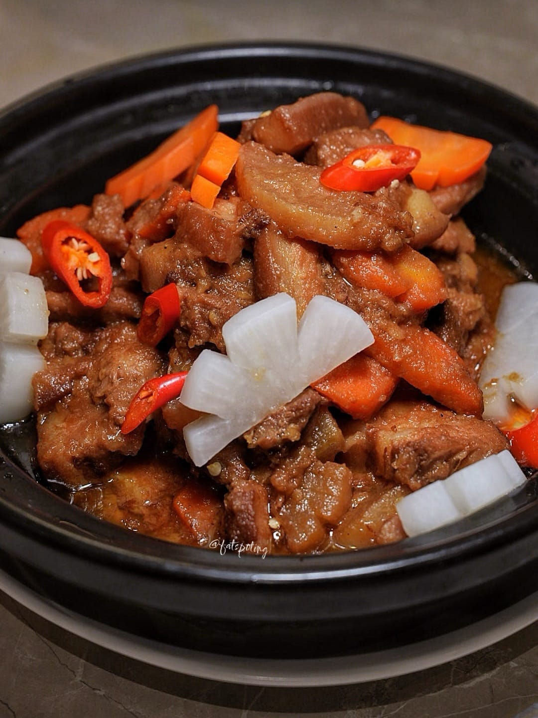 This dish feels like a festive hug: rich, savoury and comforting. Tender pork belly stewed in a gravy brimming with taucheo (fermented soybean paste), gula melaka, and umami-rich aromatics makes it a standout. Vegetables like radish and carrot soak up the sauce beautifully, while creamy yam brings a luxuriously soft finish.
