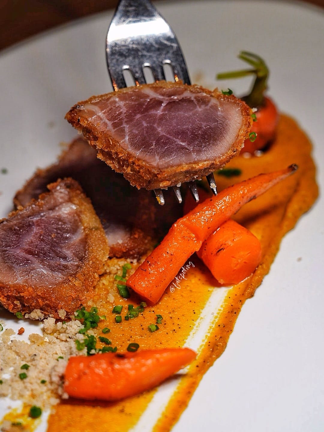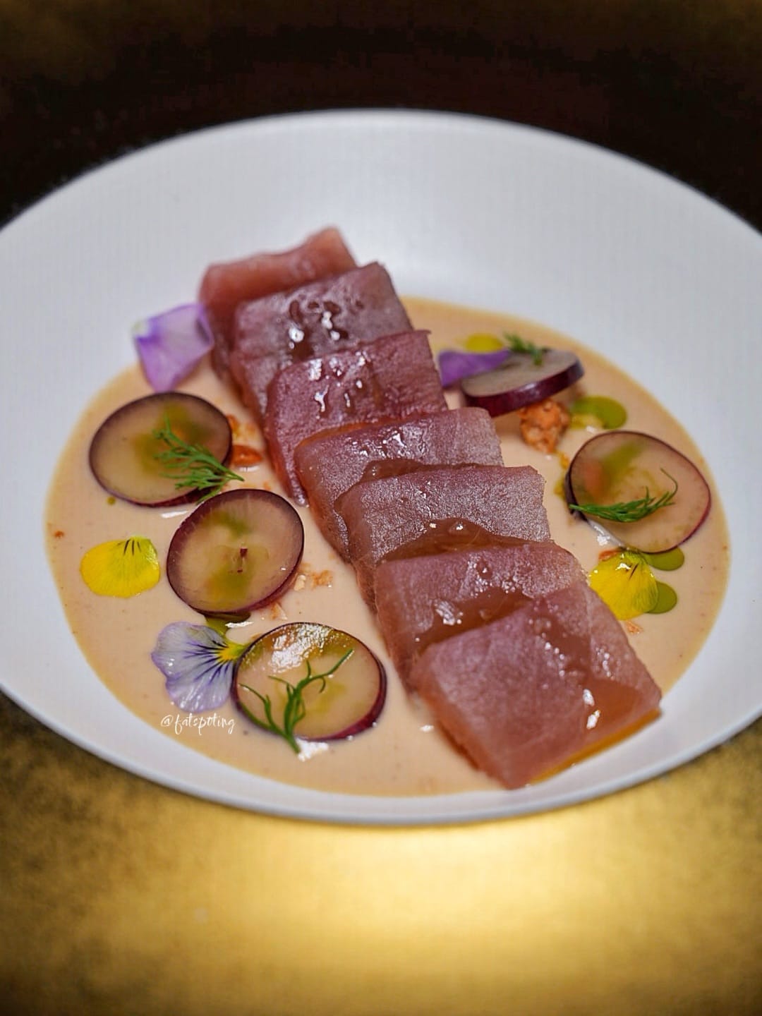 More refined plates highlight Chef Martí’s technical strengths. The Tuna Loin Ajo Blanco is particularly notable, combining delicate tuna with a chilled, creamy ajo blanco, lifted by grapes and basil oil. The dish demonstrates a thoughtful balance of richness and freshness, with a clear nod to Southern Spanish influences.