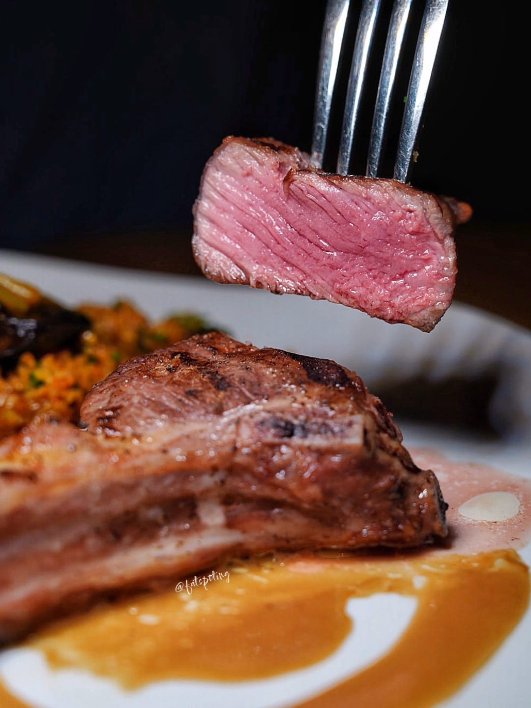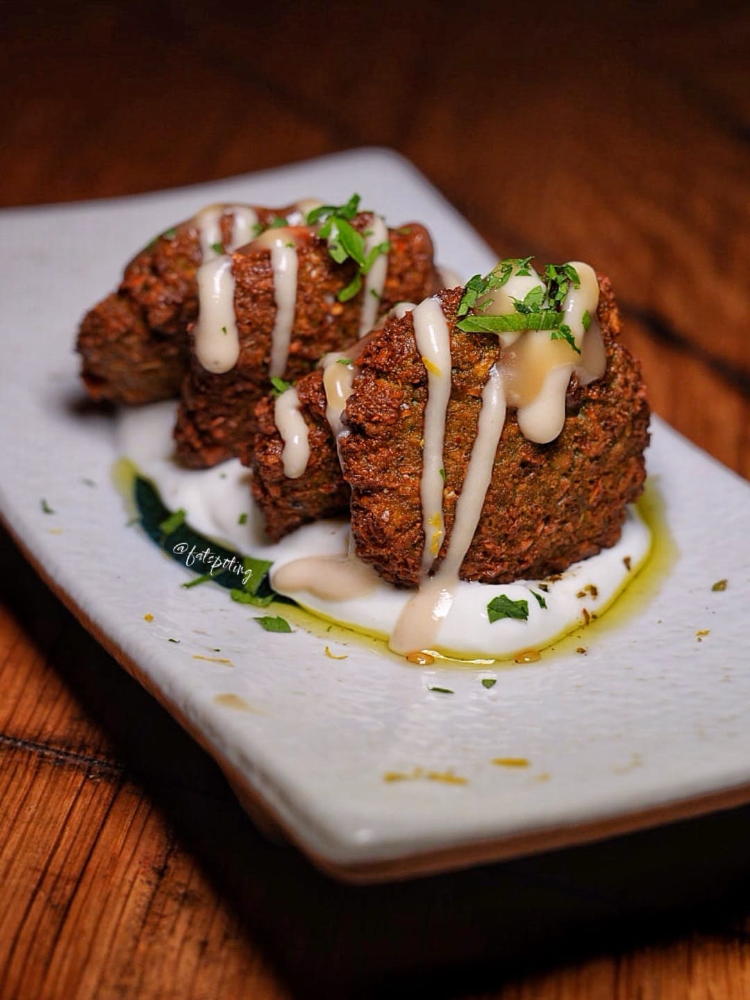 The starters reflect both familiarity and creativity. The Noa Bomba stands out as a signature - a crisp squid ink crust encasing a flavourful spiced beef filling, balanced by brava sauce and garlic aioli. The Falafel, while classic, is executed with care, offering a crisp exterior and well-seasoned interior, accompanied by za’atar yoghurt and tahini.