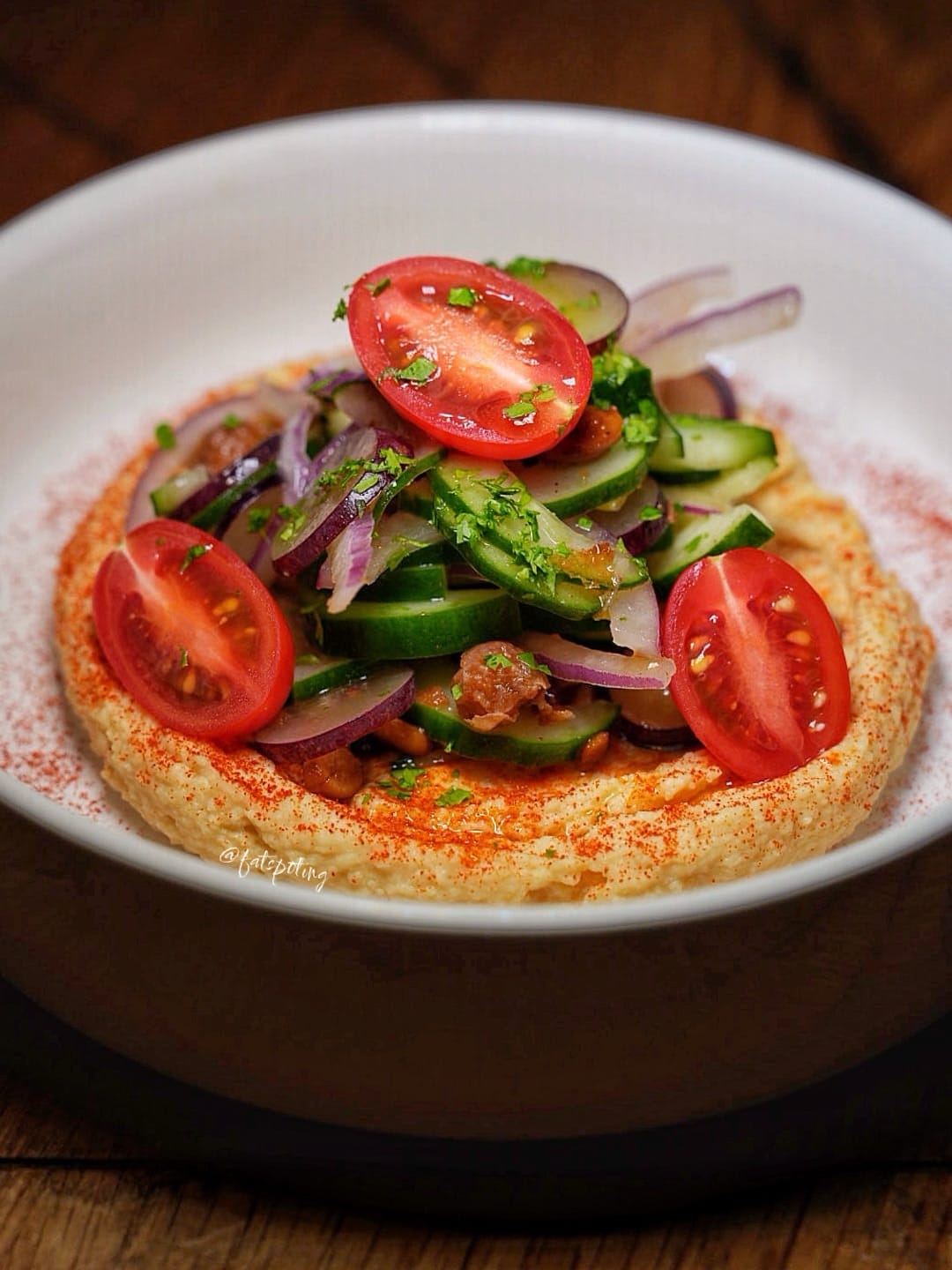This shift is immediately evident from the opening dishes. The Hummus Salad is clean and well-balanced, featuring a smooth house-made hummus complemented by fresh vegetables and subtle sweetness from grapes. Paired with warm, lightly crisp Pita Bread, it sets a strong foundation rooted in simplicity and quality produce.