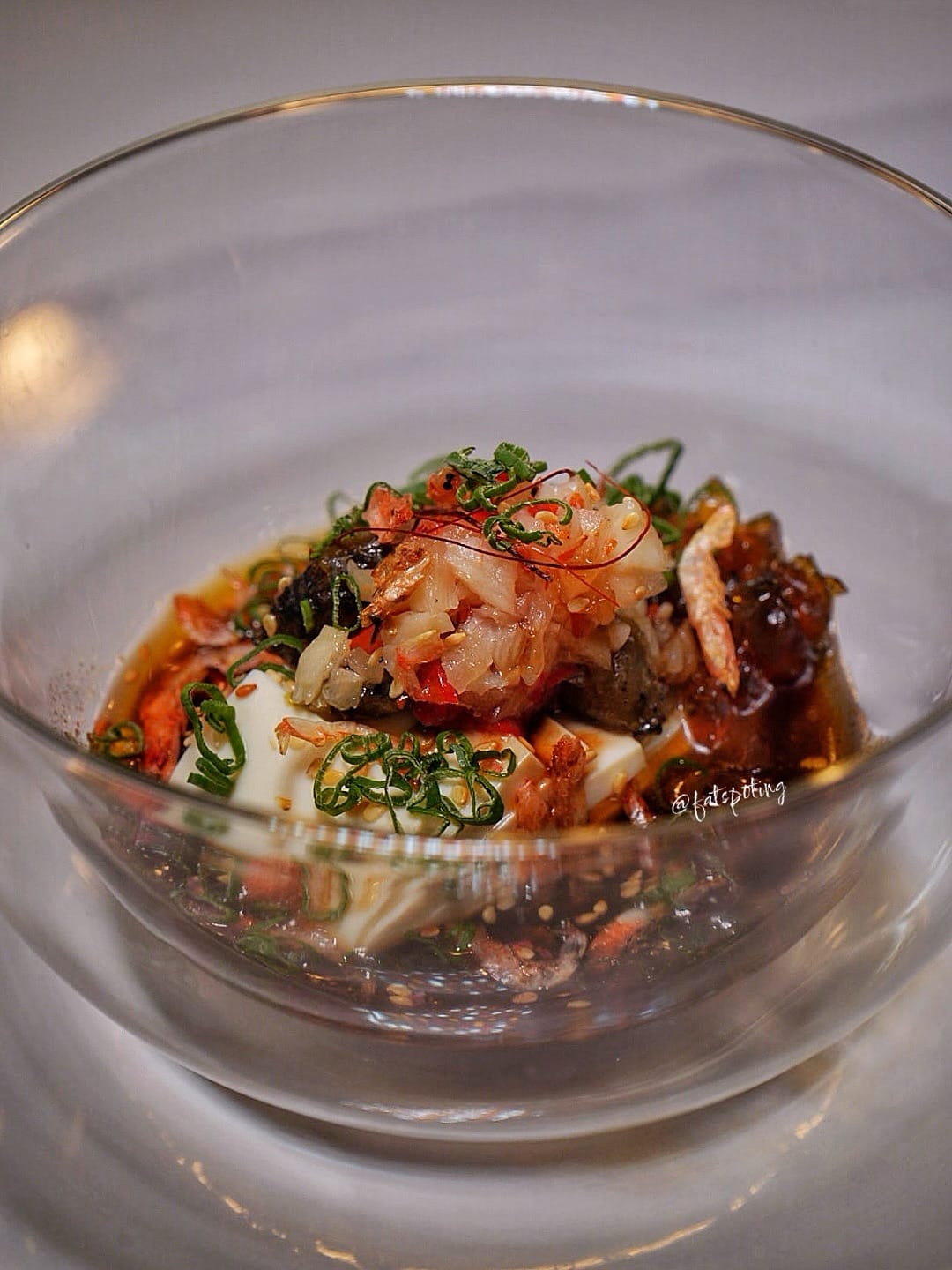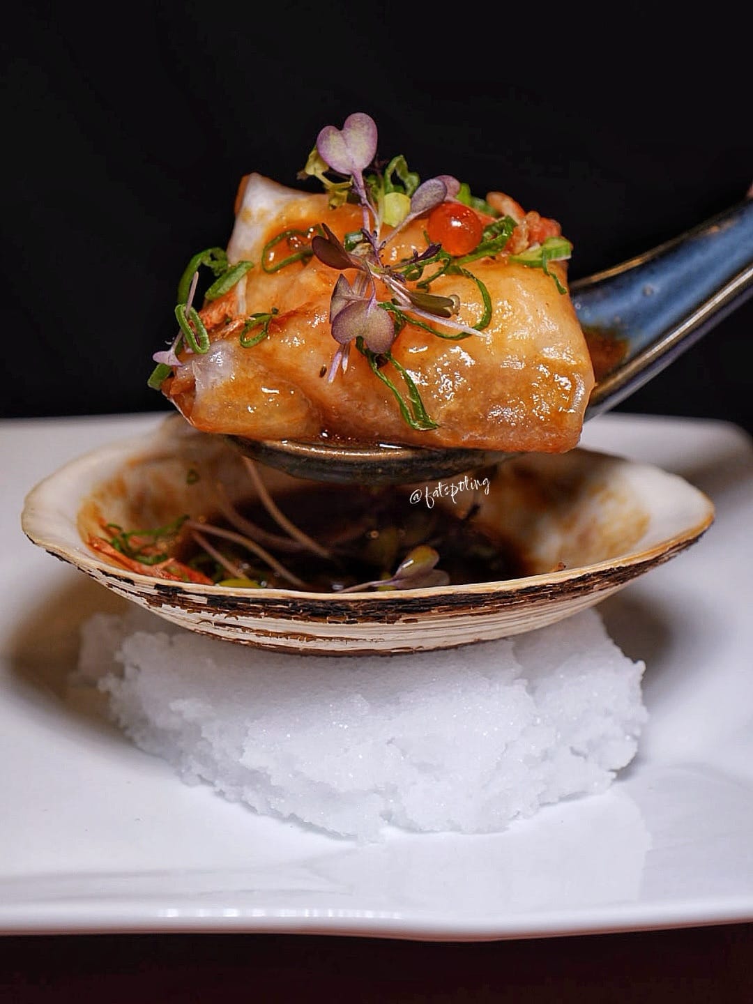 Tiger prawns enveloped in delicate crystal skin, crowned with ebi sakura and ikura, and drizzled in a rich seafood (clam) sauce.