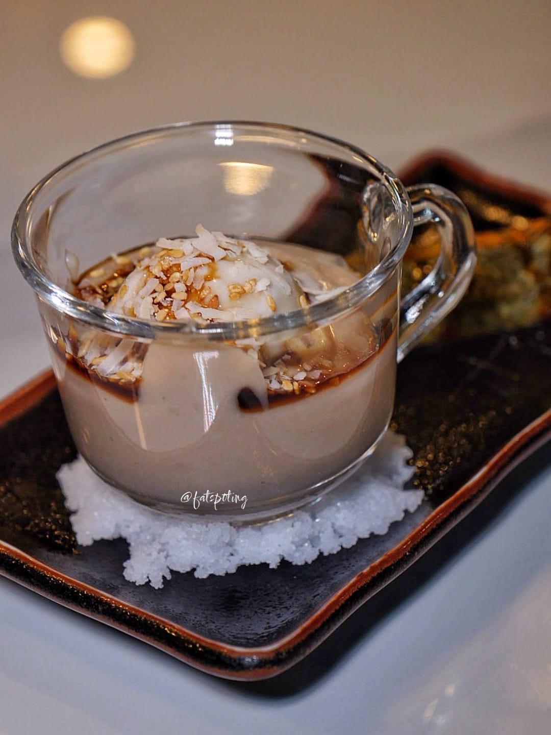 A modern take on the Teochew yam dessert—silky yam purée enriched with coconut sugar, crowned with a crispy sesame-and-water-chestnut pastry.
