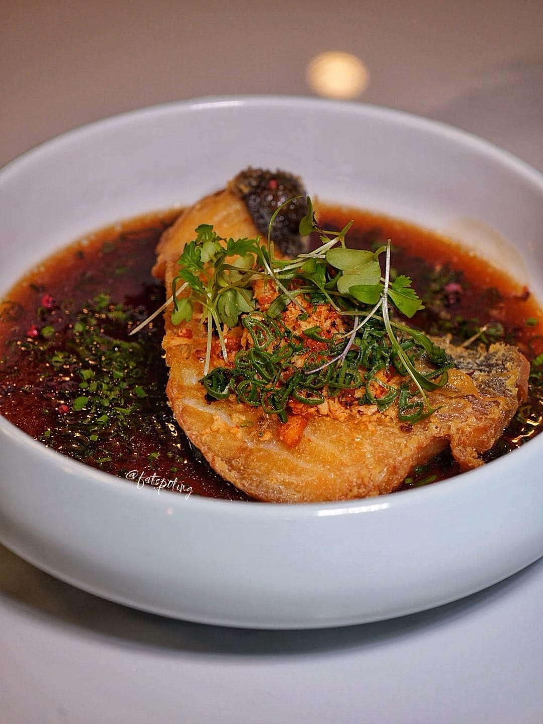 Crispy-skinned and buttery-flaked, served with fermented black bean Canton sauce.