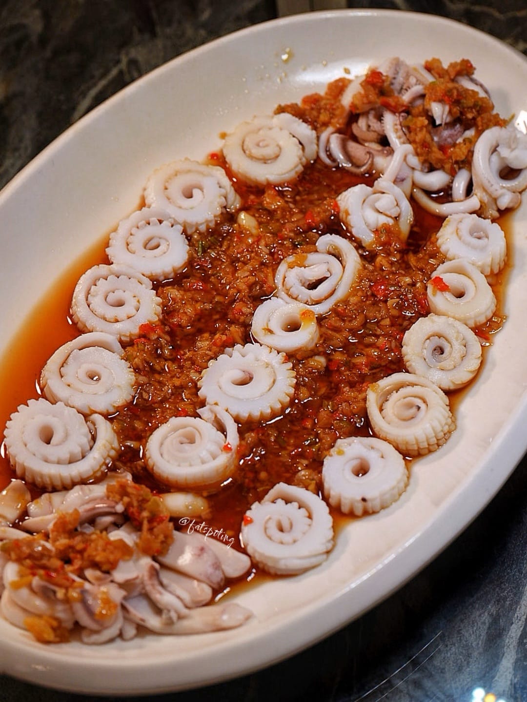 🦑 Poached Cuttlefish with Housemade Cai Poh — A contemporary creation unique to the restaurant. The cai poh adds depth, savouriness and a touch of crunch, complementing the tender poached cuttlefish beautifully.