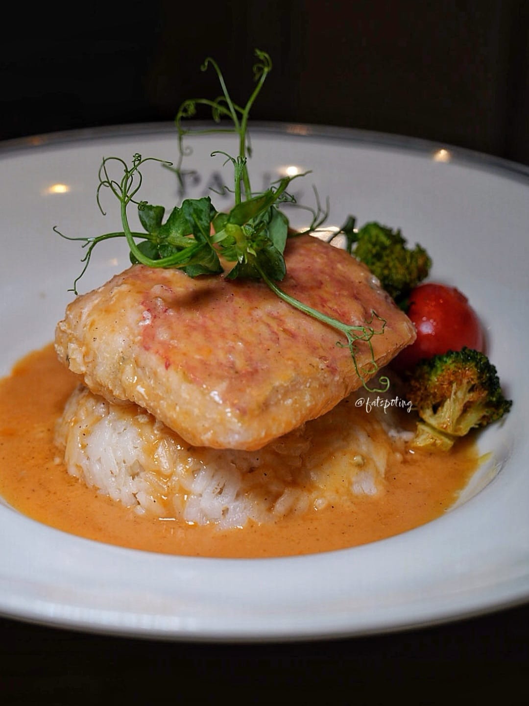 The red snapper fillet is delicately cooked, retaining its succulence and natural sweetness. It is paired with creamy risotto and broccoli for balance, while a rich cheddar shrimp sauce lends depth and a subtle umami finish.