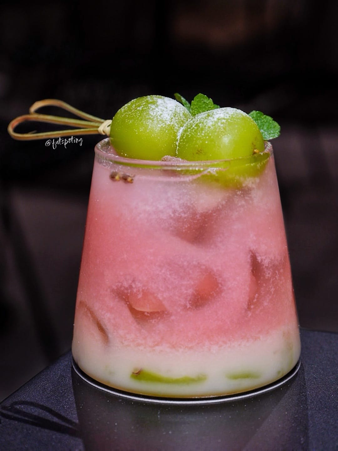 Arguably the most refreshing of the trio, this sparkling concoction marries mashed green grapes, Yakult, cranberry juice and soda. Mint leaves, whole grapes and a light dusting of icing sugar create a festive "frosted" presentation. The result is crisp and invigorating — a polished, fruit-forward beverage that still feels celebratory and uplifting.