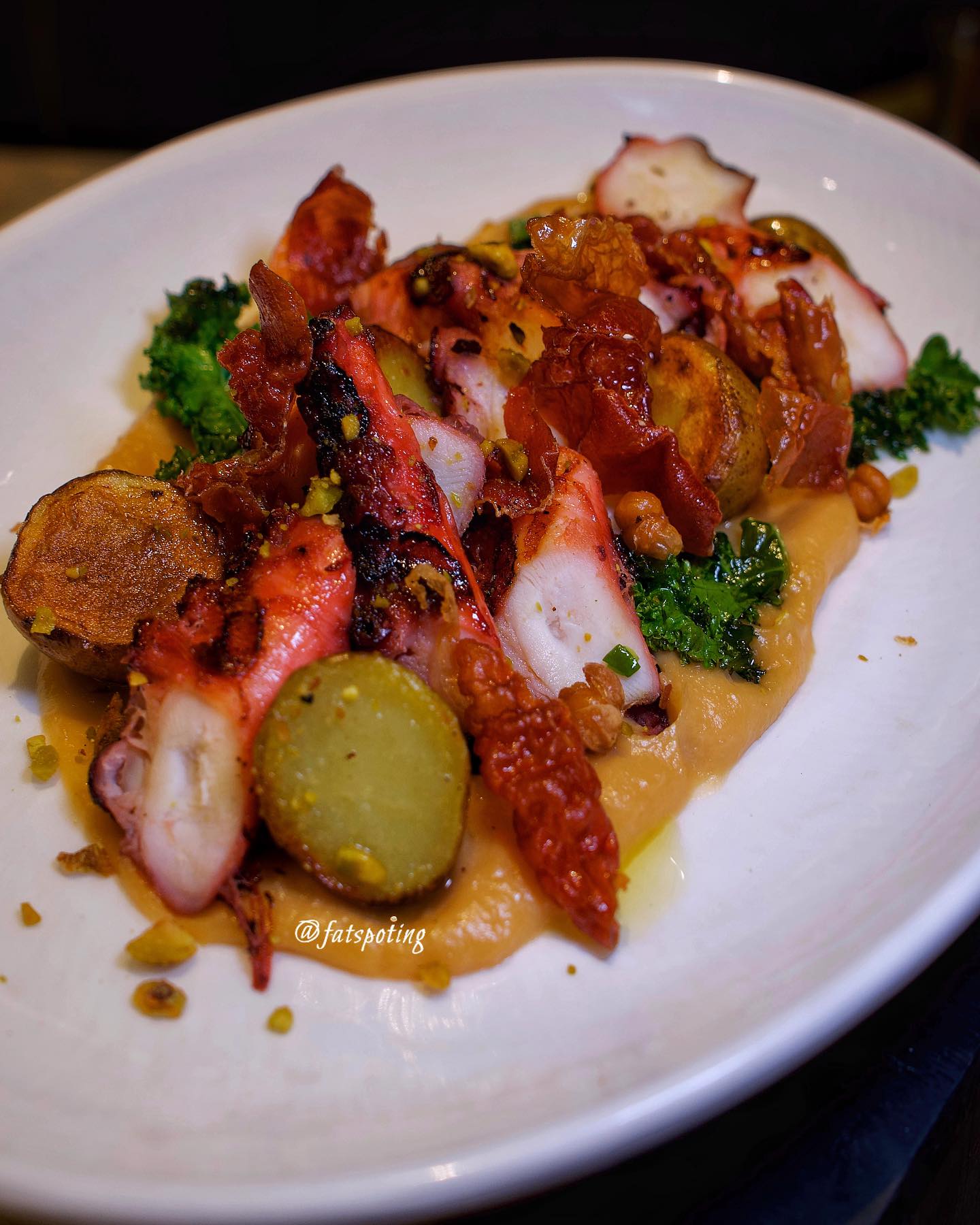 A delightful symphony of flavors that takes you straight to the sun-kissed southern coast of Italy. The charcoal-grilled octopus is served on a bed of confit garlic cream, roasted baby potatoes, charred kale, and crispy Prosciutto di Parma. The touch of Sicilian pistachio and lemon adds a zesty and fresh finish.