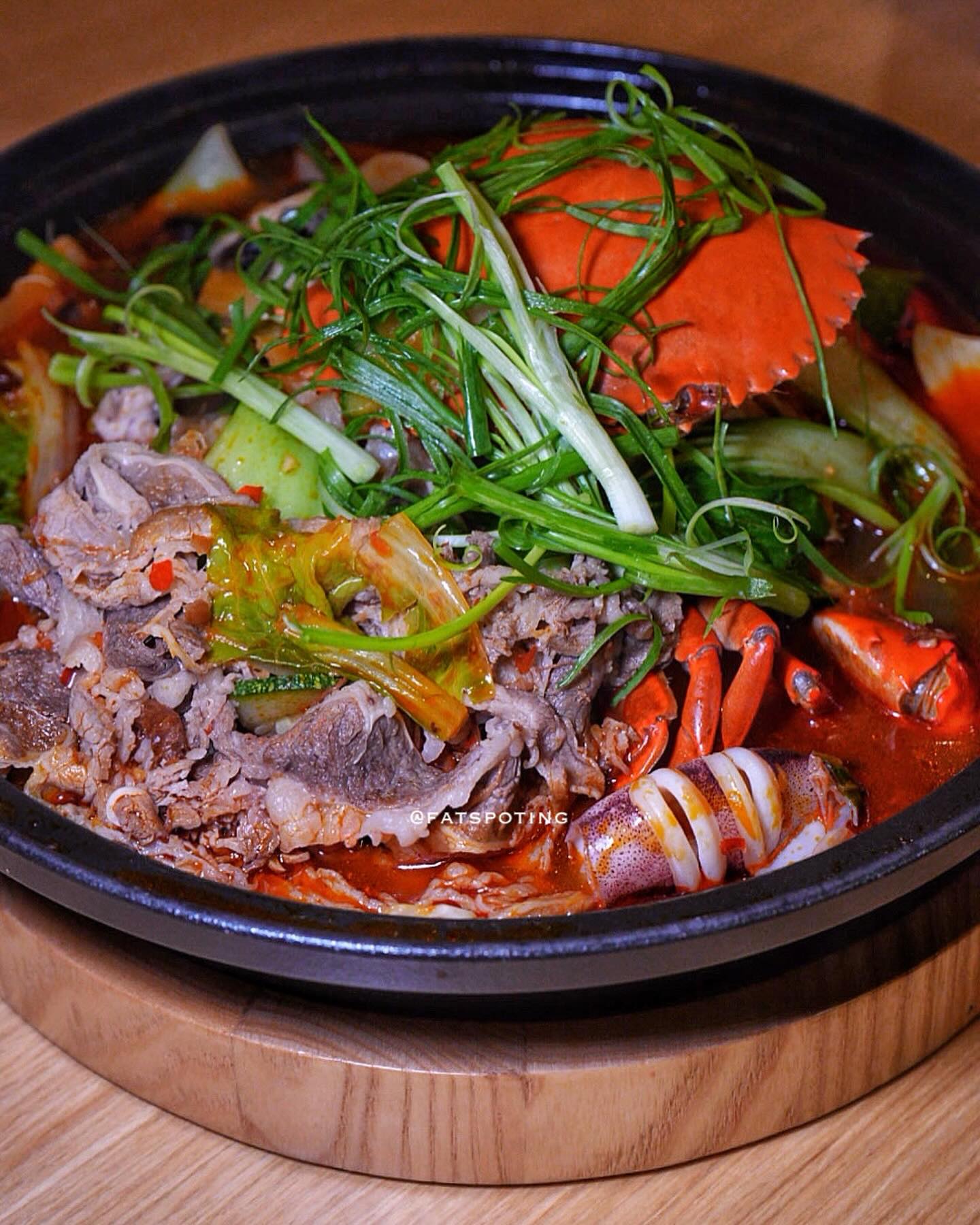 Packed with beef and an abundance of seafood including crab, squid, abalone, prawns, and scallops, it’s a korean seafood lover’s dream come true.