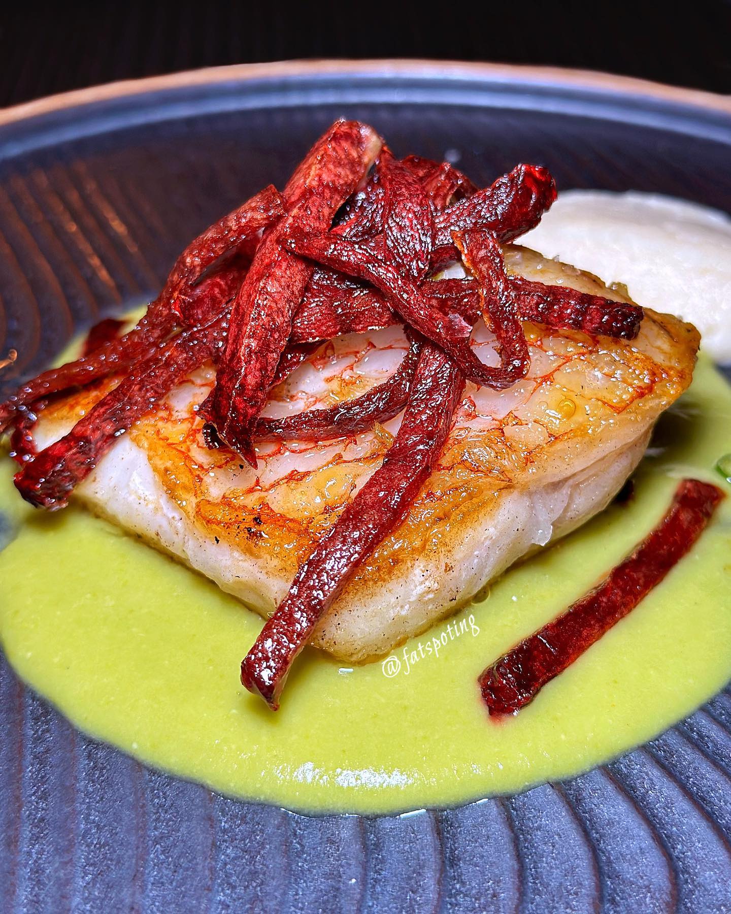 Celeriac Puree | Green Pea VeloutΓ© | Beetroot Chips