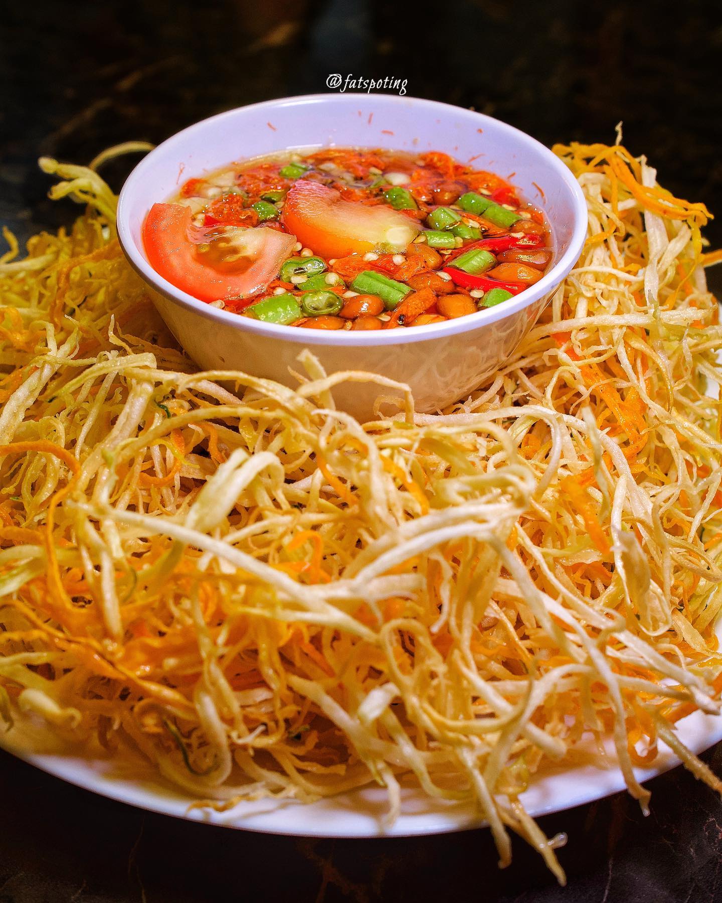The crispiness of the shredded papaya, combined with the tangy dressing and a hint of spiciness, creates a refreshing symphony of textures and flavors.