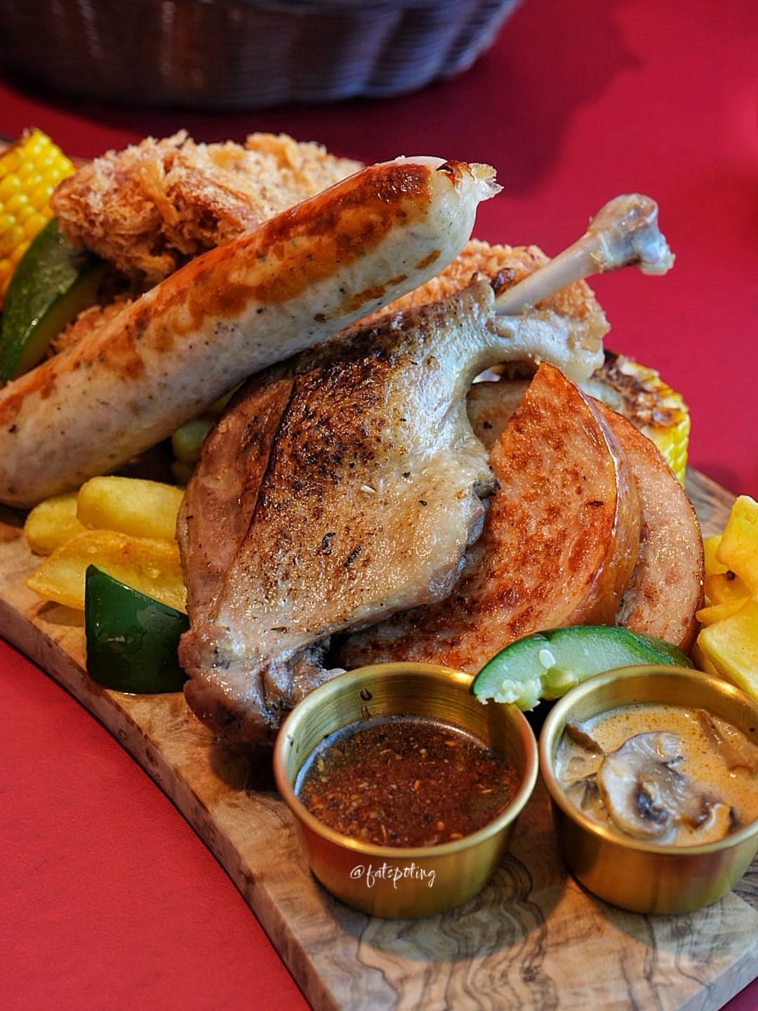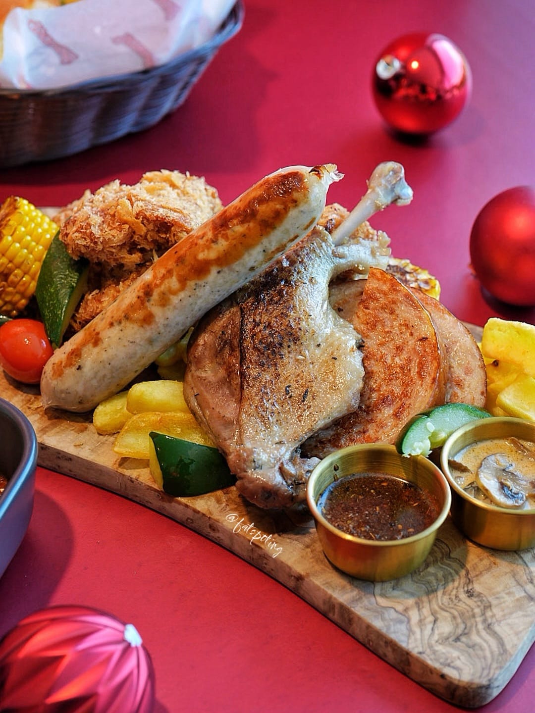 On the savoury side, the Crayfish Linguine is creamy and satisfying, with a rich seafood-forward sauce that coats the pasta well. It's comforting rather than complex, and best enjoyed while hot. The Creamy Tomato Seafood Stew feels like a warm, hearty bowl for the season, packed with a mix of seafood in a tangy tomato-based broth, especially enjoyable with bread on the side for dipping. The Trio Poultry Platter is clearly made for groups. With duck confit, crispy fried chicken, and grilled chicken, it offers satisfying variety and generous portions. Each protein is well-prepared and delivers its own flavour profile – making it easy to share and enjoy. The desserts are where the whimsy truly shines. Topped with playful biscuit details and bold colours, each one is as Instagrammable as it is indulgent. They're sweet, fun, and tie the festive meal together with a cheerful finish.