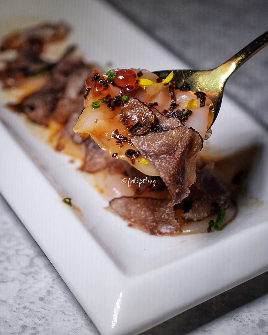 Start with the Hokkaido Hotate Carpaccio, where hand-dived scallops are beautifully complemented by truffle shoyu, ikura pearls, and freshly shaved truffles for a decadent, ocean-fresh bite. Follow it up with crispy Yuzu Kosho Crab Crackers, with a zesty crab meat filling dipped in yuzu kosho mayo—perfectly paired with crunchy crackers.