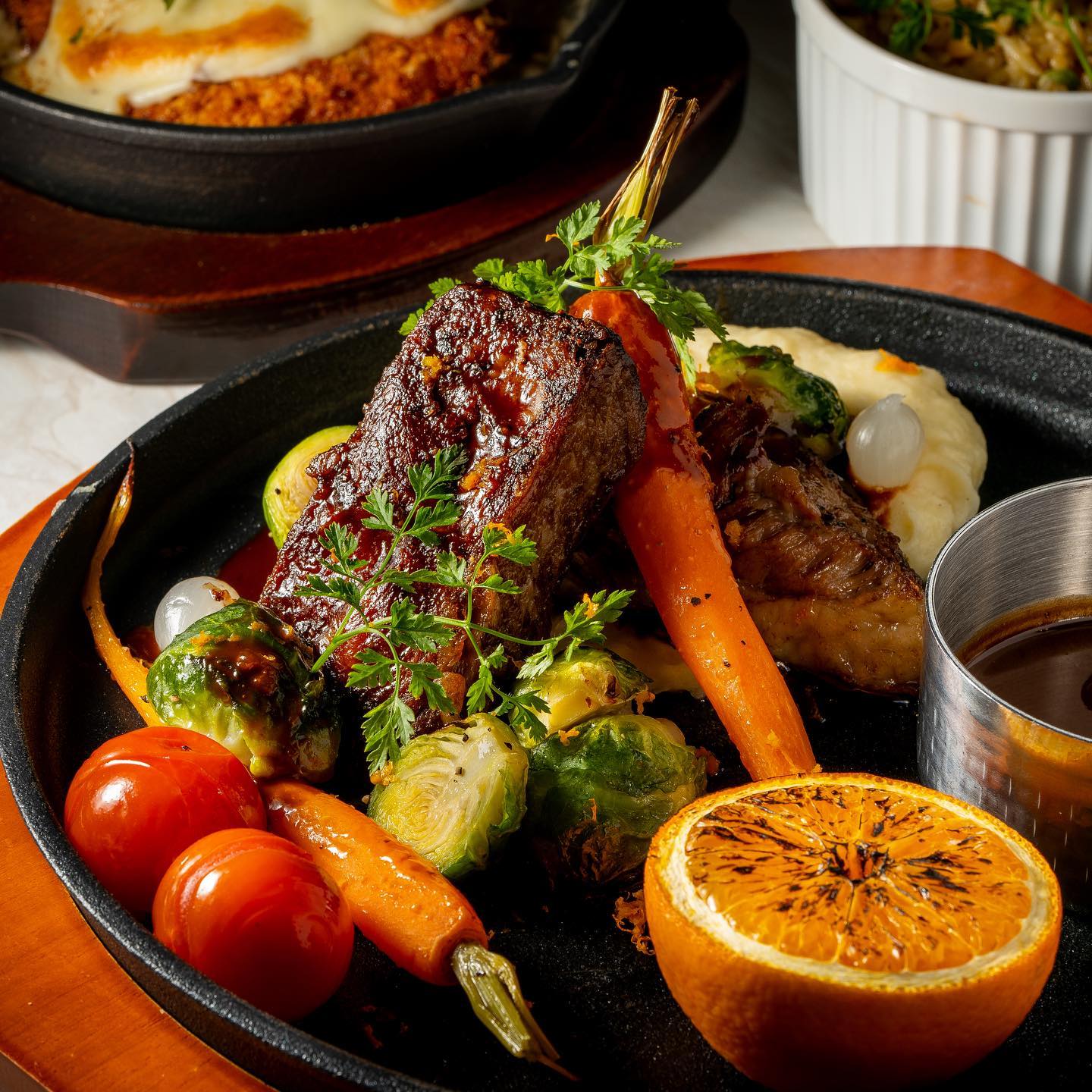 Served with roasted winter vegetables and horse radish mash. Drizzle it with orange infused dark chocolate sauce for a gratifying meal.