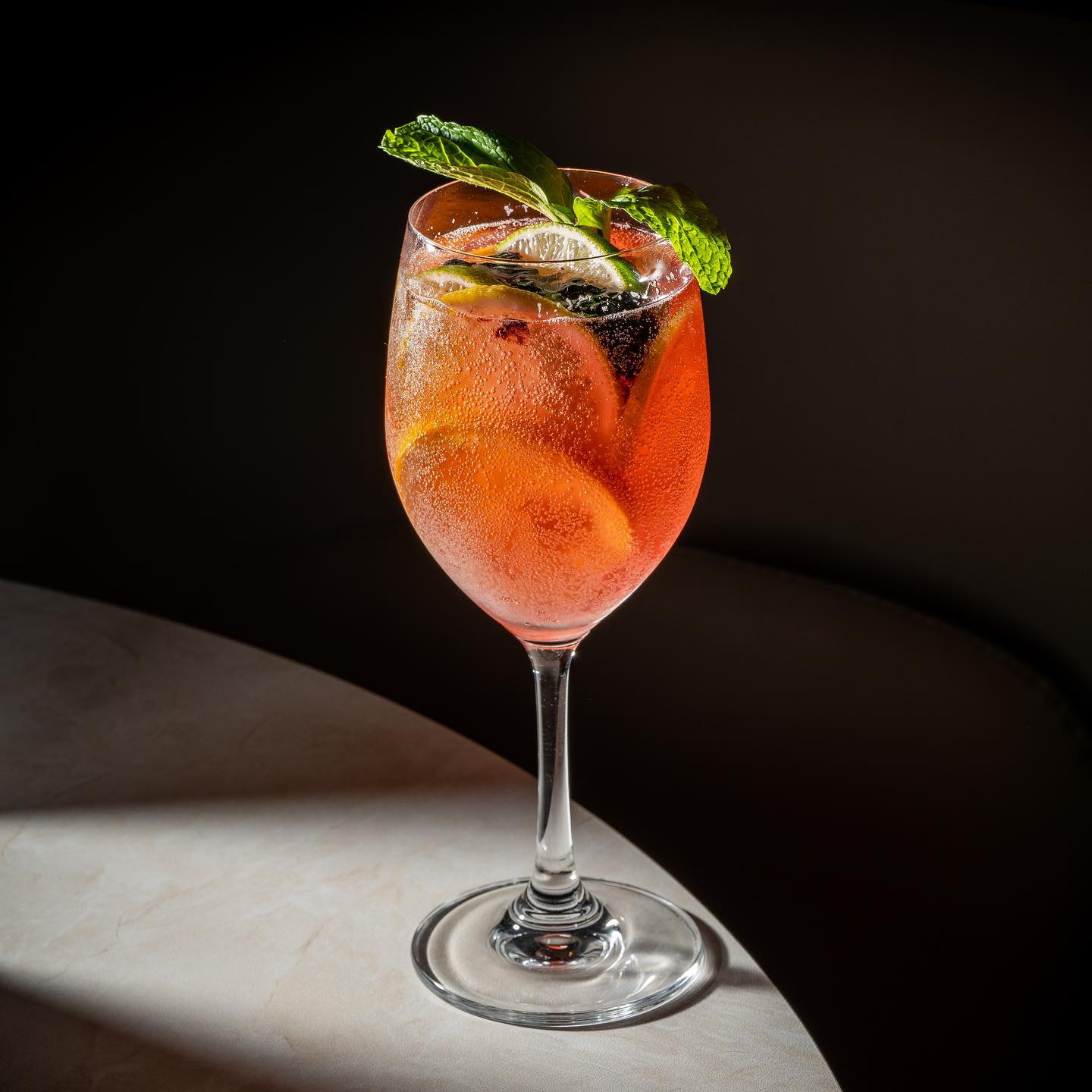 A wondrous concoction of Bottega Moscato sparkling wine, pomegranate cranberry, yuzu juice, enhanced with fresh citrus infusions.
