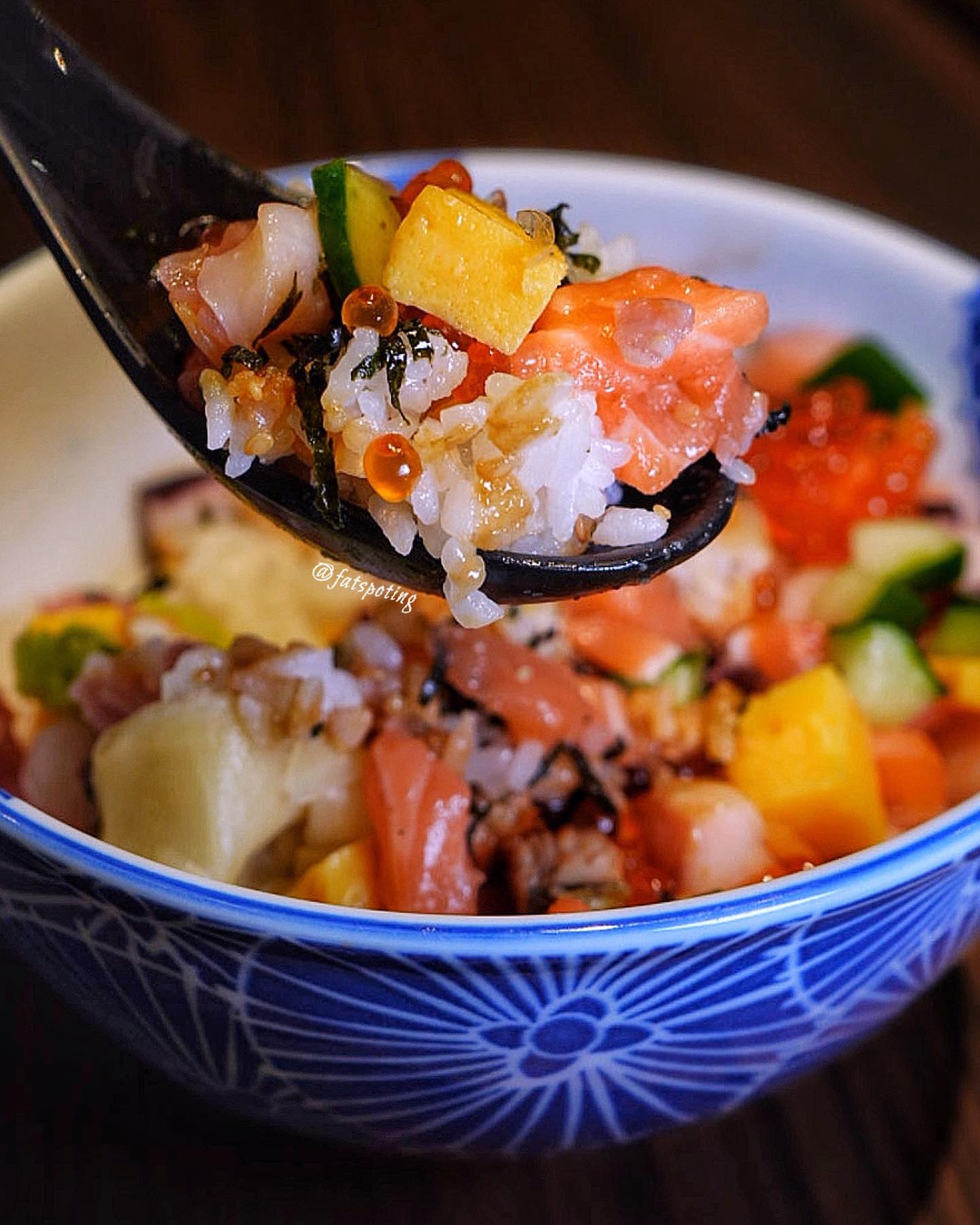 New signature Kaisendon featuring a delightful mix of unagi, salmon, tuna, cucumber, tamago and scallops. It comes with a small bowl of udon.