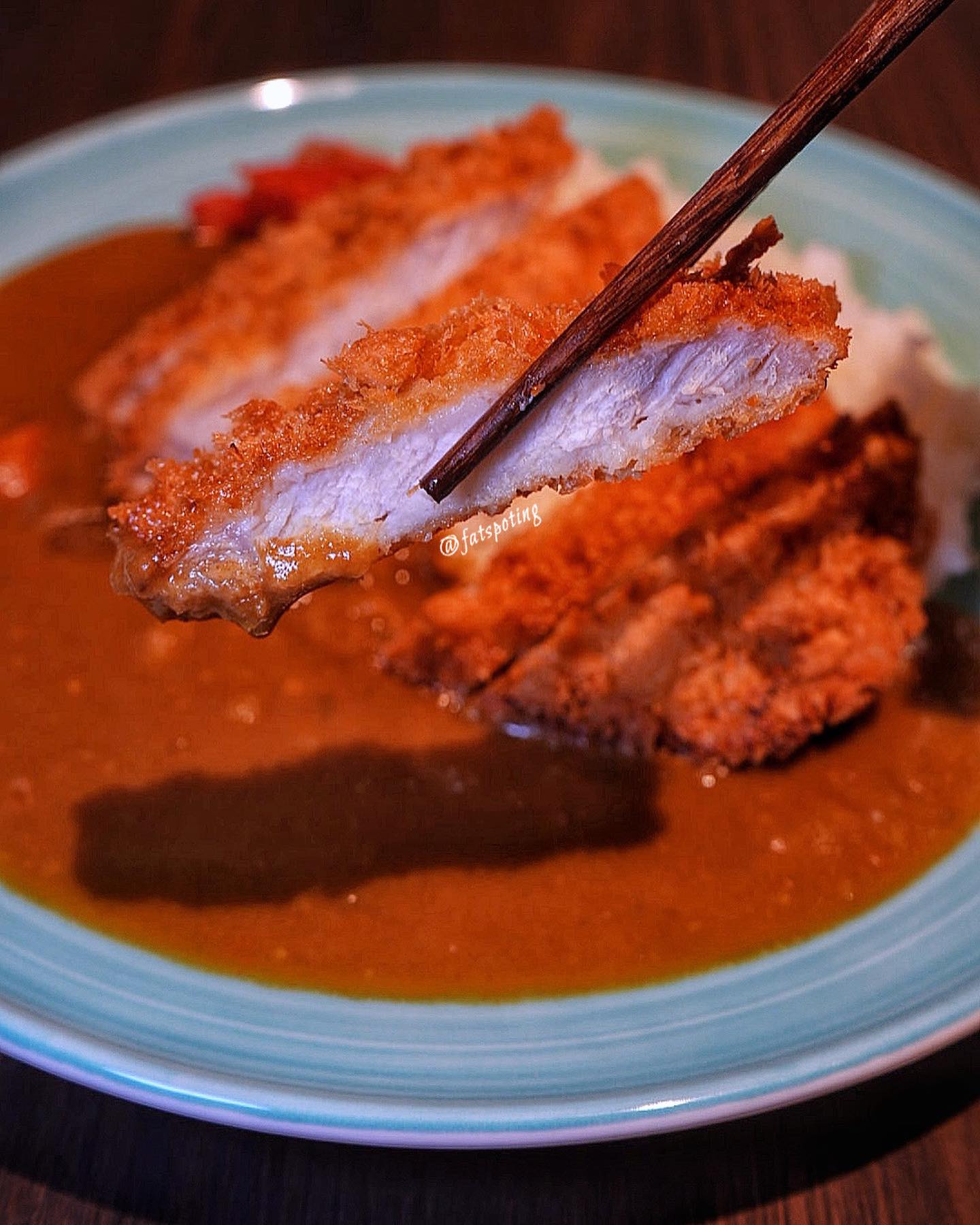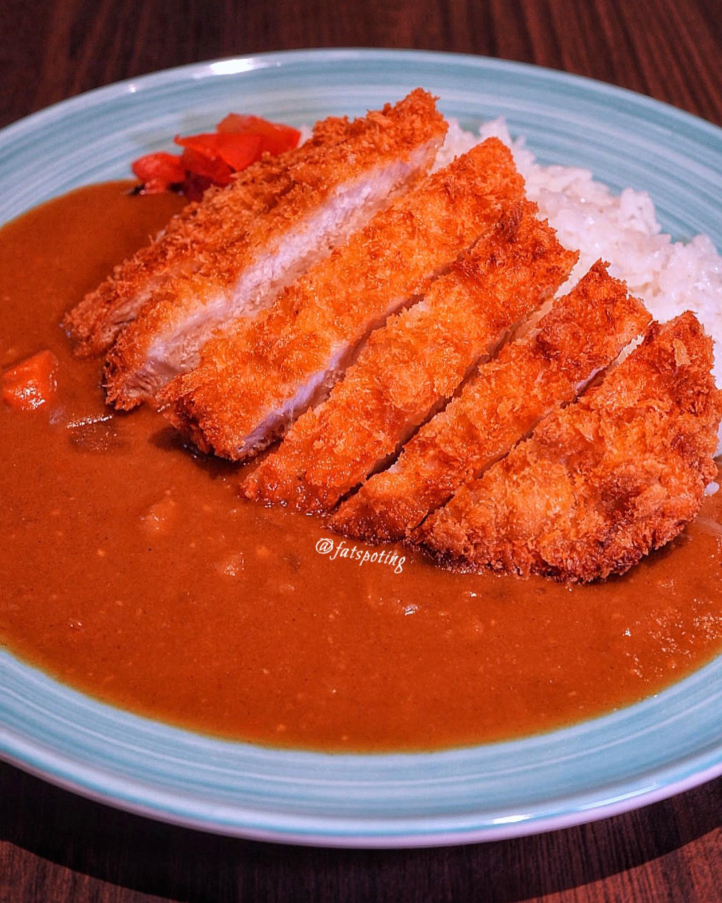 Leaner cut pork or chicken katsu coated in a thin layer of crispy batter, served alongside Japanese curry.