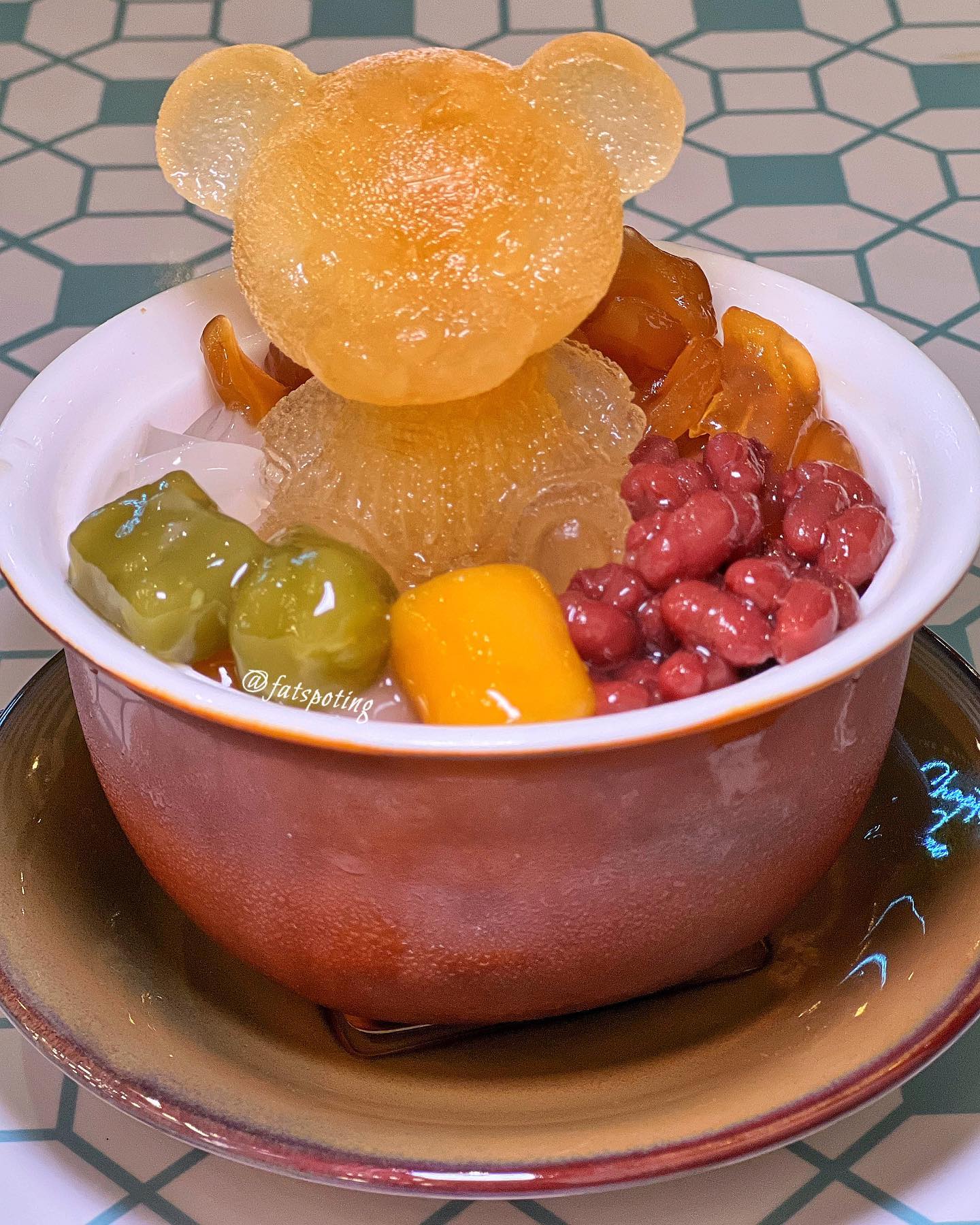 To elevate your high tea experience, don't miss out on the refreshing Qing Bu Liang dessert. This refreshing concoction features a delightful blend of coconut water, taro balls, red kidney beans, pearl sago, coconut jelly and honey sea coconut, topped with shaved coconut ice and an adorable frozen iced bear.