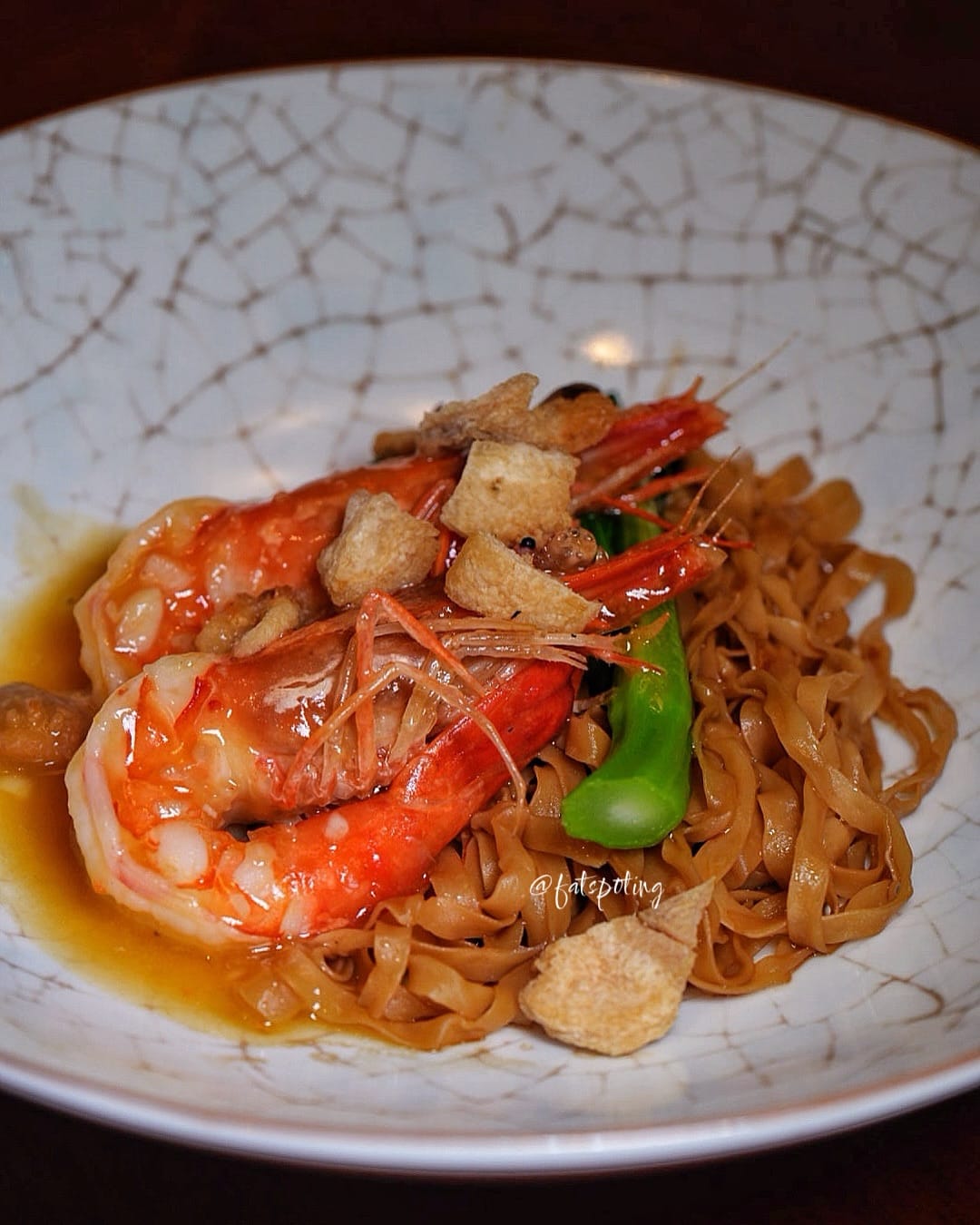 Tossed Pork Lard Noodle topped with Prawn pays a nod to traditional flavors, combining al-dente noodles tossed in aromatic pork lard, crowned with plump, juicy prawns. The result is a satisfying blend of textures and umami flavors.